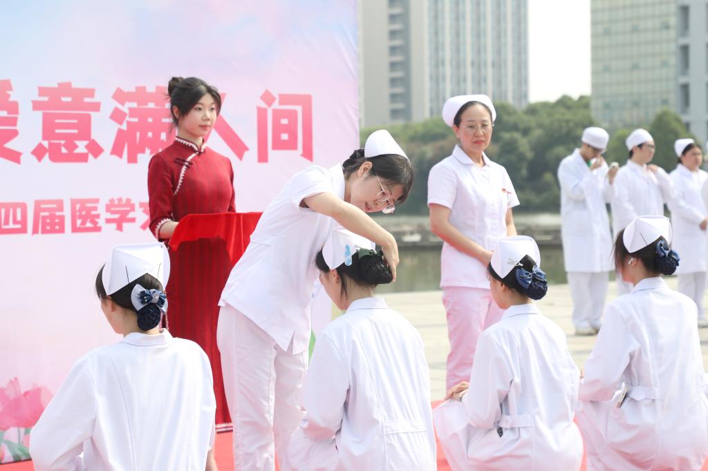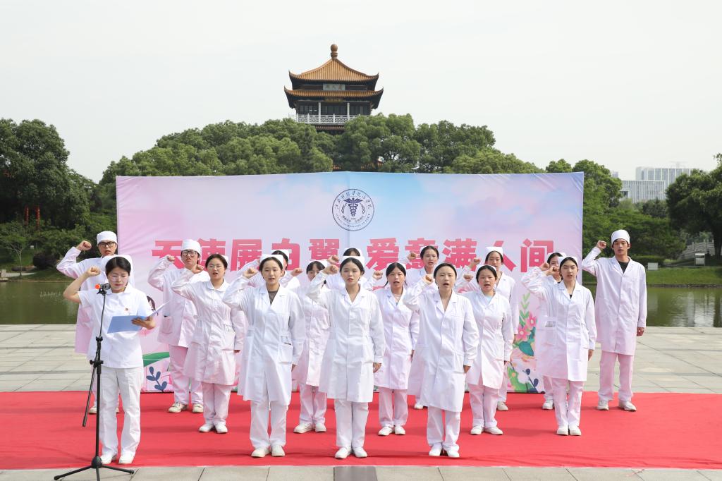 在本届医学文化节开幕式上,同学们用国风舞蹈、八段锦、急救科普演示等充分展示有自信、敢担当、能作为的新时代护理事业接班人的英姿。授帽仪式后,同学们掷地有声,铿锵有力的宣誓,展现准护士们坚守的恒心。