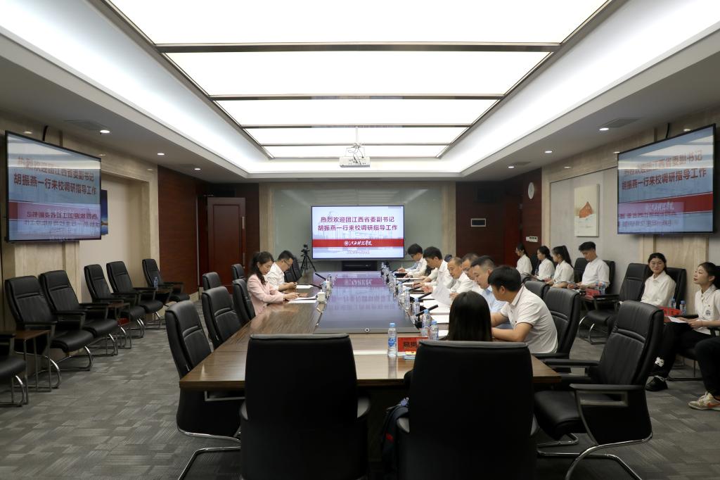江科网讯(记者 何强江)6月6日,共青团江西省委副书记胡振燕来校调研指导共青团工作。校党委书记邓弘会见胡振燕一行,校党委副书记、副校长闵桂林,校团委书记马孙亮等陪同调研。