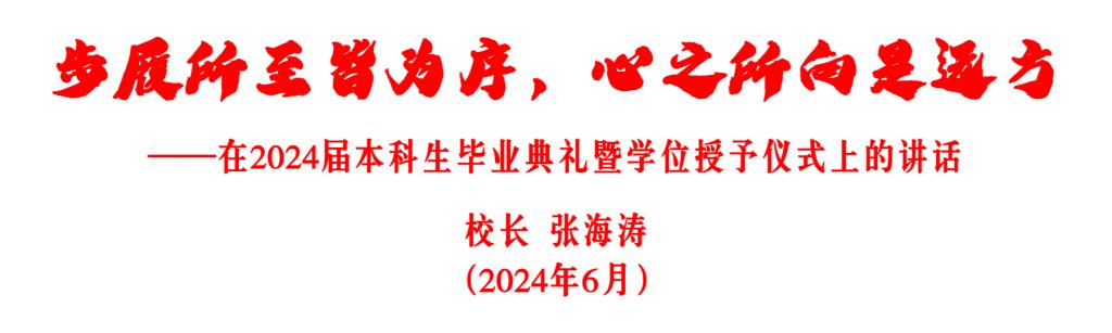 来日方长暂作别,循光而往踏歌行。毕业典礼是大学美好时光的回溯与总结,也是你们和母校最后一次正式的“同框”。作为你们大学生涯的“最后一课”,在临别之际,我有三个祝愿送给大家: