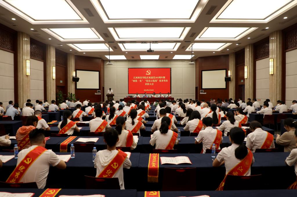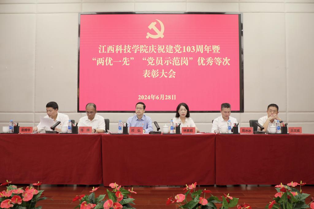 江科网讯(记者 何强江)6月28日,江西科技学院庆祝建党103周年暨“两优一先”“党员示范岗优秀等次”表彰大会召开。会议坚持以习近平新时代中国特色社会主义思想为指导,深入学习习近平总书记考察江西重要讲话精神,弘扬伟大建党精神,表彰先进,鼓舞干劲,激励全校各级党组织和广大党员更加紧密团结在以习近平同志为核心的党中央周围,认真落实学校“十四五”发展规划,以高度的政治自觉、强烈的责任担当,为推进“应用型好大学”建设贡献新的更大力量。