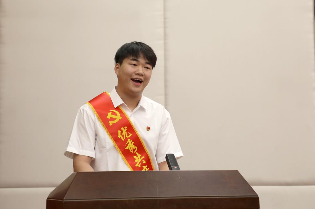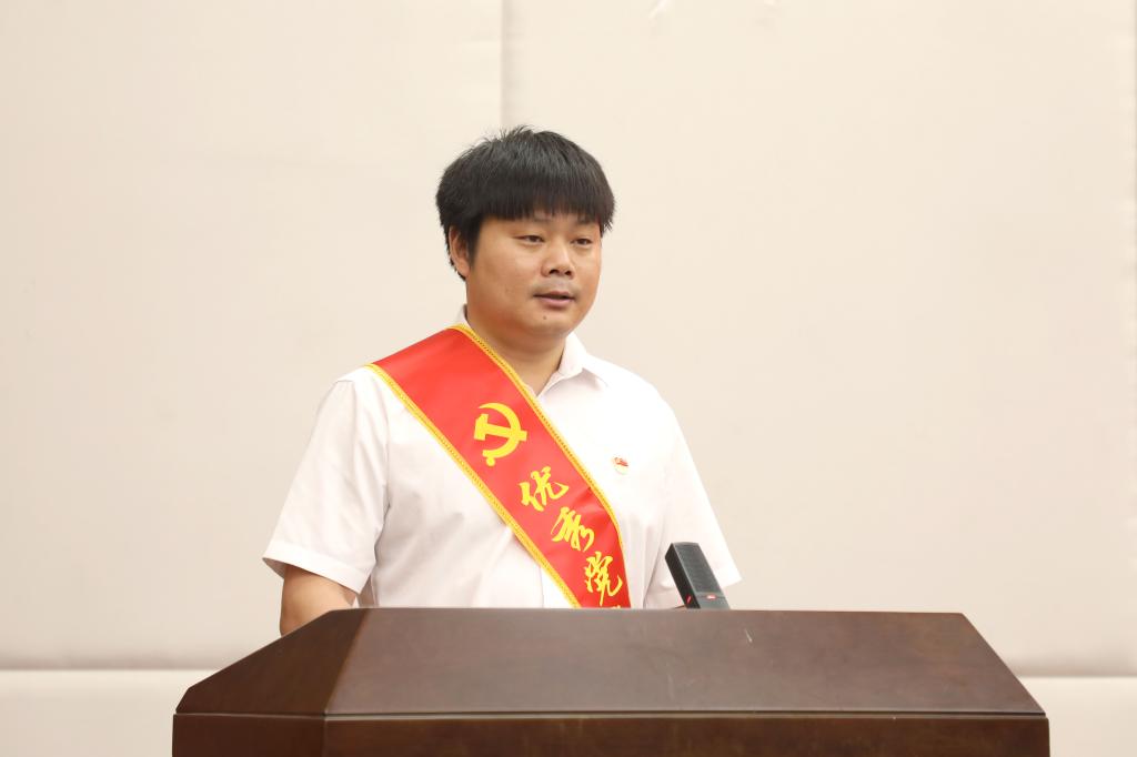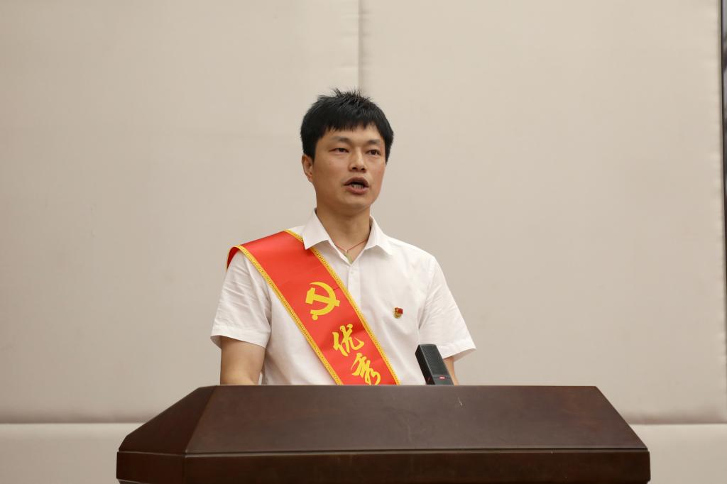 人工智能学院教师陈正科、艺术设计学院21本环境设计7班学生陈科维作为优秀党员代表发言,教育学院党委专职副书记汤佳伟作为优秀党务工作者代表发言,马克思主义学院教学副院长袁罗牙作为先进基层党组织代表发言,协同创新中心教师唐鹿作为“党员示范岗优秀等次”党员代表发言。