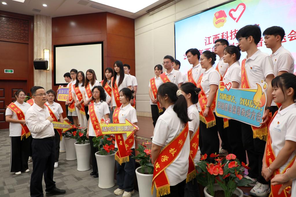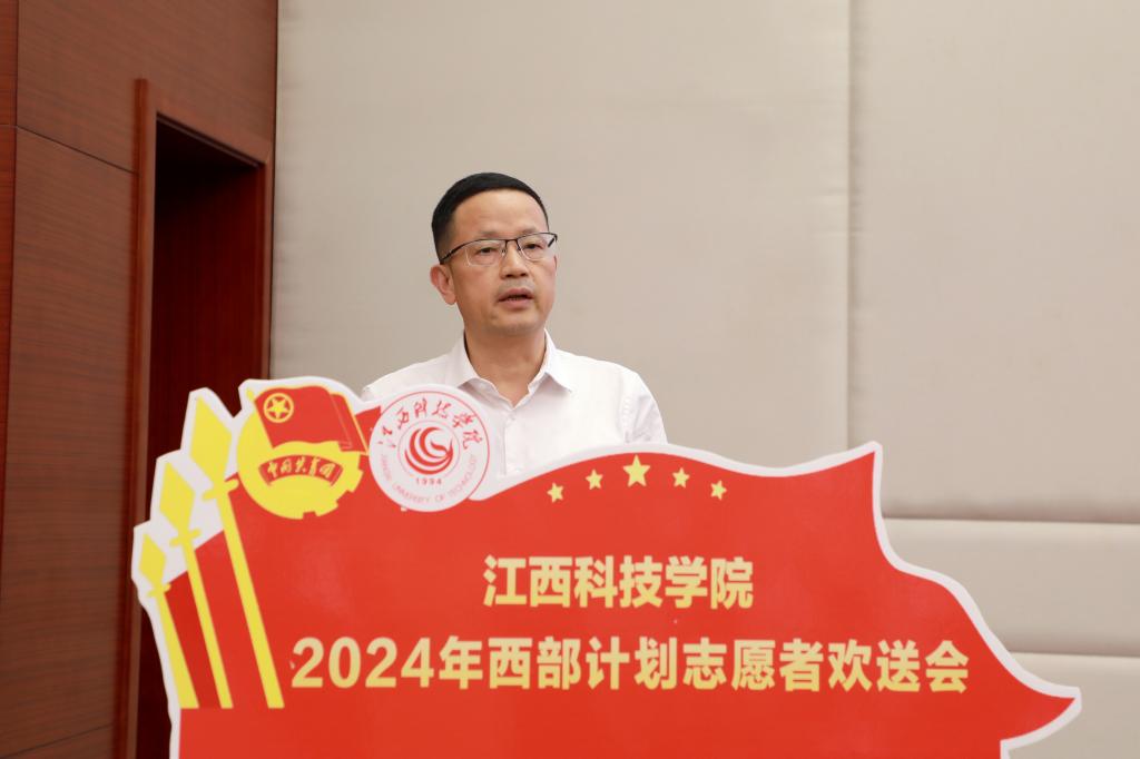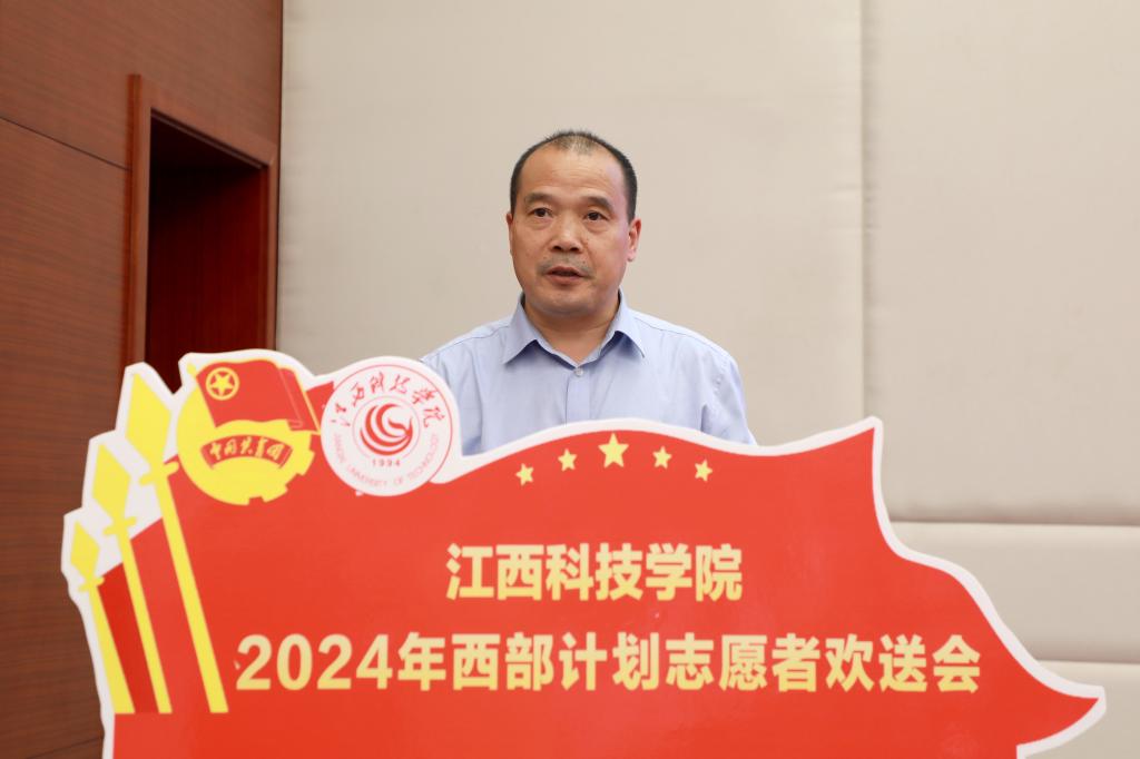 江科网讯(记者 何强江)7月2日,我校在行政南楼第一会议室举行2024年“西部计划”志愿者欢送会。校党委书记邓弘出席欢送会并讲话,校党委副书记、副校长闵桂林出席并宣读《江西科技学院2024年西部计划志愿者表彰名单》。校团委书记马孙亮主持欢送会。