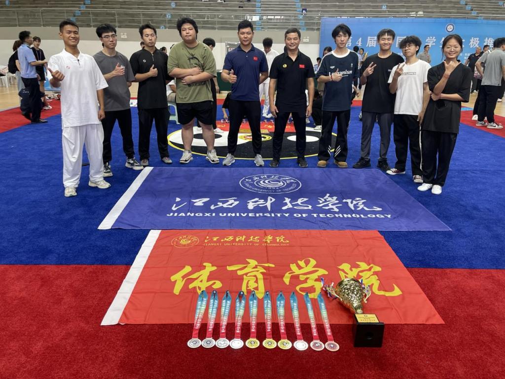 江科网讯(体育学院) 7月8日至12日,由教育部中国学生体育联合会主办的第四届中国大学生太极推手锦标赛进行。我校武术队的8名同学作为第一次参加全国太极推手比赛的新秀,在领队严财庆和教练员陈蒋华、许世保、尹志红的带领,敢于拼搏、不畏强敌,共取得3金4银3铜与1个第五名的傲人战绩,同时获得男子甲A组团体总分第三名。