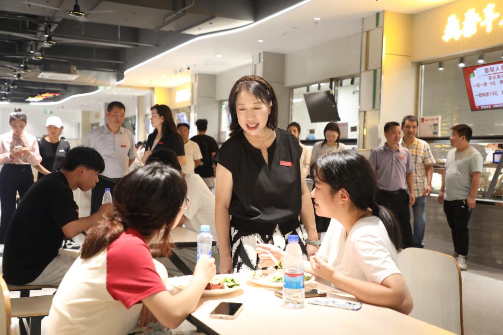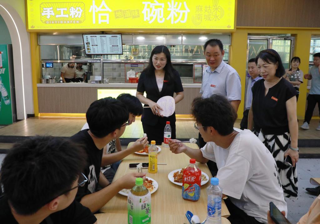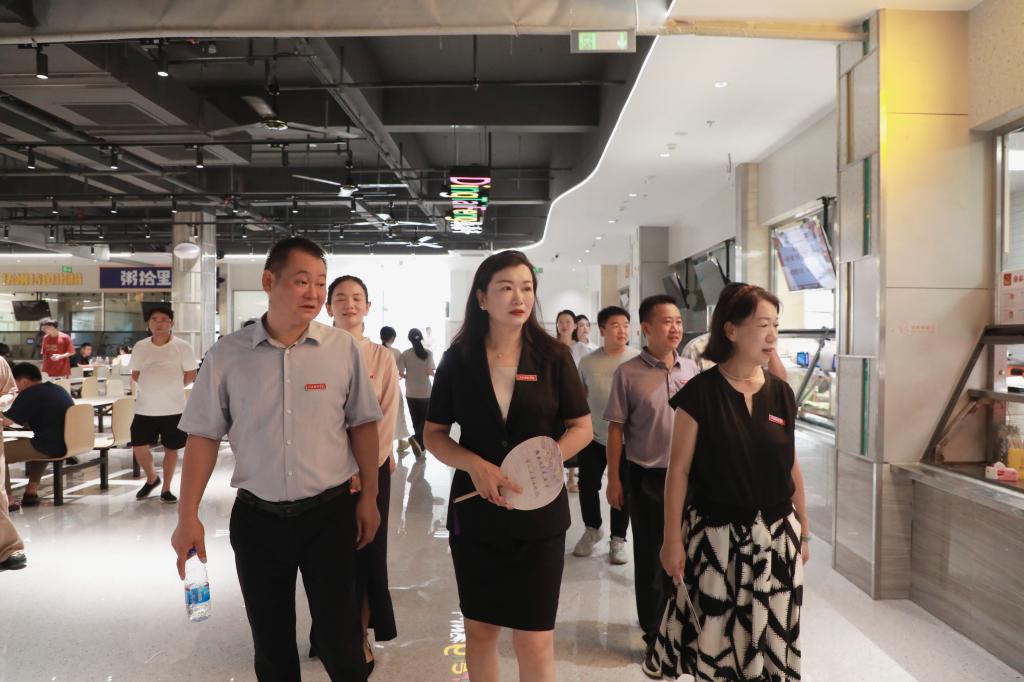 张海涛校长、林素君副校长深入食堂,进行开学前食品安全专项检查。张海涛校长全面检查食品贮存、餐具清洗消毒、消防安全、从业人员健康管理等情况。她还与用餐的新生及家长交流,询问他们的用餐体验。张海涛校长强调,后勤部门要协同配合保障师生舌尖上的安全,不断强化责任意识,加强日常监管,对排查出的问题要限时完成整改,确保新学期师生用餐安全。