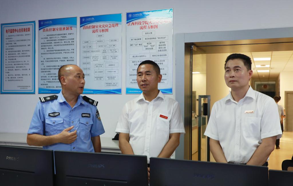 江科网讯(记者 李倩 何强江 杨泳慧 实习记者 杨光)8月22日、23日,学校理事长喻恺、党委书记江延湖、校长张海涛等校领导,分别带队深入教学区、宿舍区、学生食堂、迎新点等场所,巡查指导学校秋季开学准备工作。