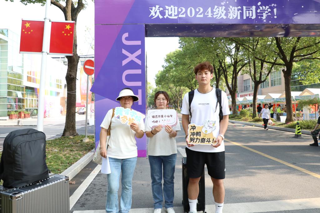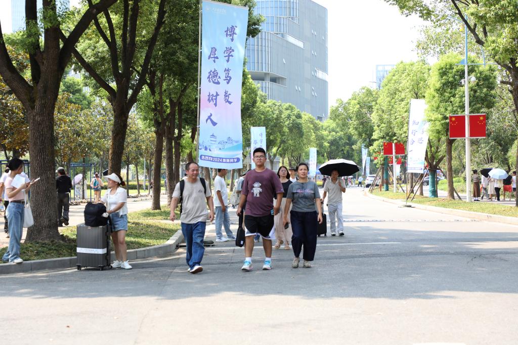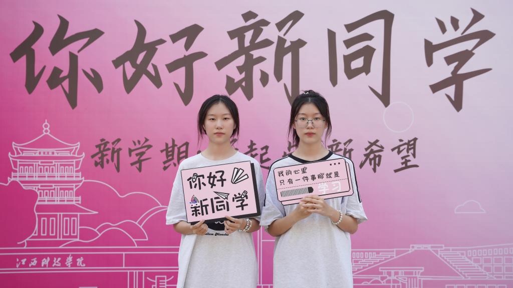 进入校园大门,红色拱门早已立起,通往大学生服务中心集中报到点的遮阳帐篷依次排开,印有教风、学风的彩旗在香樟西路、银杏路等主干道上迎风招展。在志愿者和工作人员的热情引导下,新生们热闹而有序地进行着入学报到、入住宿舍等手续。新生中,共有3对双胞胎,她们分别来自上海和江西。其中,来自上海的双胞胎姐妹蒋成风、宋成芸双双录取至艺术设计学院的视觉传达设计专业,来自江西九江的双胞胎姐妹葛媛、葛梦分别录取至文化与传媒学院网络与新媒体专业和教育学院教育学专业,来自江西上饶的双胞胎姐妹丁苏萍、丁梅萍被录取至财经学院会计学专业。