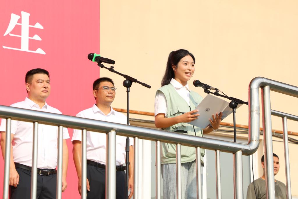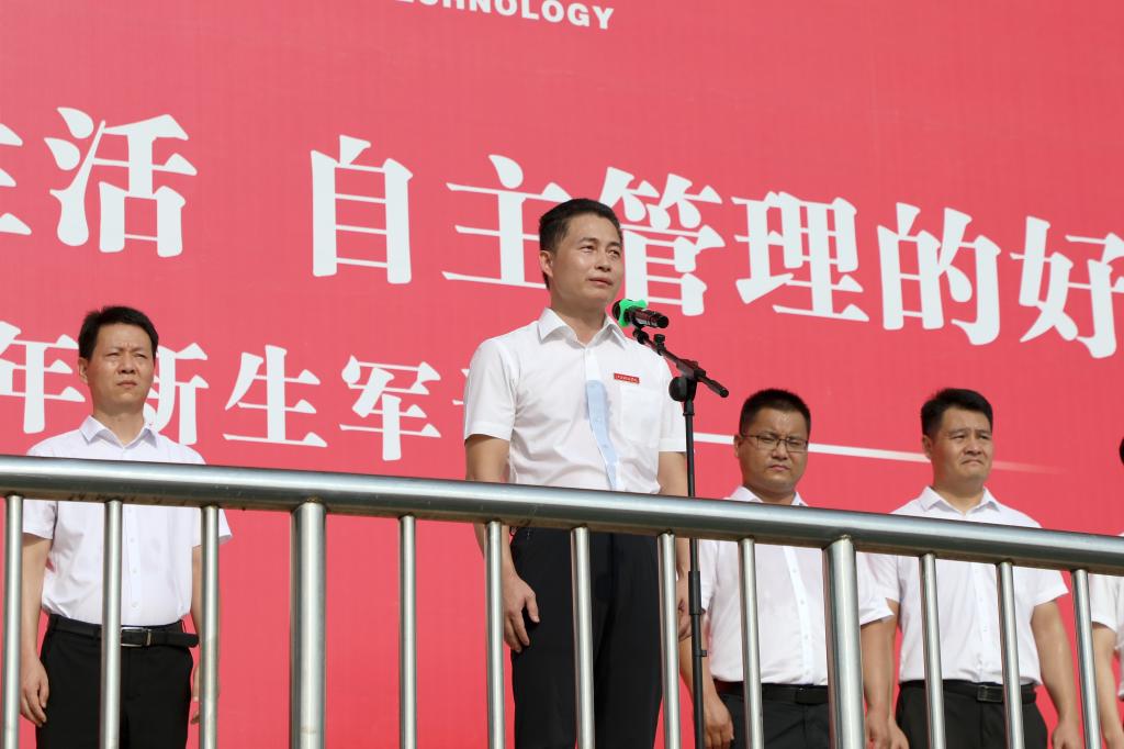 开训仪式上,学工助理中心学生干部代表发言,全体军训教官进行带训宣誓并进行中队教官分配。