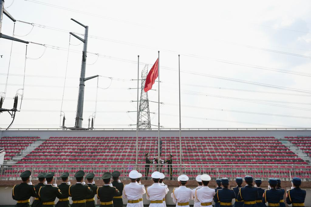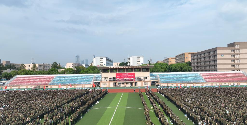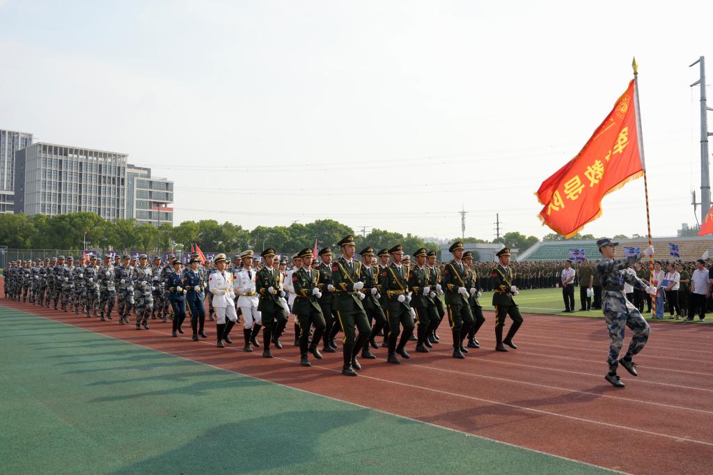 开训仪式在庄严的升旗仪式中正式开始。周冰冰副校长作动员讲话并下达开训命令。他强调,进行军事训练既是学校贯彻落实《中华人民共和国国防法》《国防教育法》《兵役法》的具体行动,也是全面贯彻党的教育方针,落实立德树人根本任务,培养德智体美劳全面发展的社会主义建设者和接班人的重要举措。对全体参训人员,他提出三点希望:一是希望全体参训人员深刻认识国防教育的重要意义,认识强大的国防是国家经济繁荣、人民安居乐业的坚强保障。二是希望全体参训同学始终以军人的标准严格要求自己,努力练就过硬本领。三是希望全体带训教师切实落实立德树人根本任务,将军训工作与学校人才培养目标和学生思政教育紧密结合。