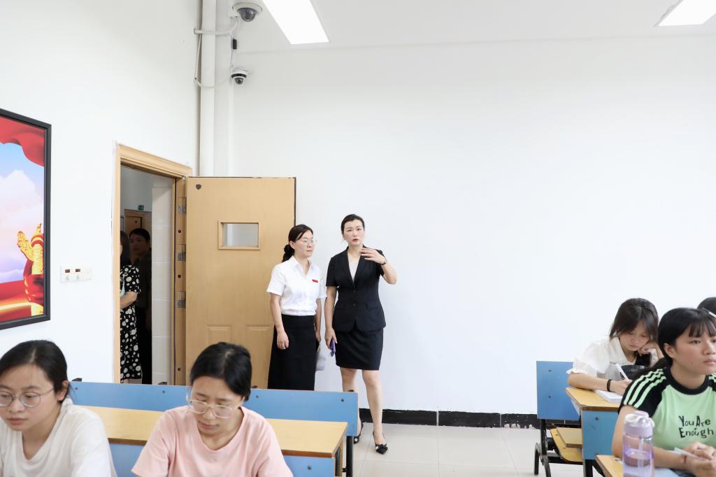 校长张海涛,副校长陈辉、周冰冰率领第一组成员,分别对管理学院、财经学院、外国语学院和艺术设计学院开学首日的教学情况进行检查指导,重点关注教师授课、学生听课、教学环境、学生返校率和学生健康状况等方面。张海涛校长高度重视教学保障工作,对教学资源和设施进行细致巡查,同时就存在的问题进行现场反馈并作出整改指示。她强调,要不断优化整体教学环境,以崭新的面貌迎接同学们返校上课;要以新一轮本科教育教学审核评估为契机,切实加强教风和学风建设,促进学校人才培养质量的全面提升。检查期间,鉴于高温天气,为保障广大师生的身体健康和生命安全,张海涛校长还召开现场办公会,对新生军训时间安排进行及时调整,要求制定应急预案和快速响应机制;强调新生班辅导员尤其要加强对学生的关心关注,让新生安心、家长放心。陈辉副校长表示,各教学单位要进一步加强教育教学监督保障工作,重视教师、教材和课堂管理,严格按照教学大纲和教学安排开展本学期的教学工作。周冰冰副校长指出,要进一步提升校园安全管理水平,持续建立健全校园安全长效机制,为师生营造一个平安和谐稳定的校园环境。