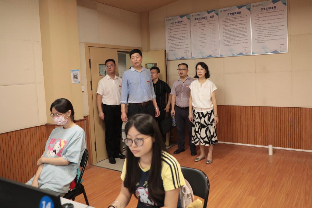 校党委书记江延湖,党委副书记、副校长闵桂林,副校长吕文威率领第二组成员来到马克思主义学院、文化与传媒学院、现代教育技术中心、博雅国际学院、教育学院,询问各教学单位老师的到岗情况和学生返校情况,听取各单位的主要负责人关于教学工作开展的汇报,检查了教学环境、多媒体设备、实验实训室设备运行等情况。江延湖书记表示,开学第一天,各学院教学组织落实到位,课堂教学井然有序,师生精神饱满,教学环境整洁,教学设施运行正常。希望师生认真深入学习贯彻党的二十届三中全会精神,用实际行动迎接新中国成立75周年、学校新一轮本科教育教学审核评估,奋发进取,抓住机遇,与时偕行。闵桂林副校长强调,课堂教学是人才培养的主渠道,要高度重视课堂教学质量,强化课堂教学管理,不断提升人才培养质量。吕文威副校长要求各学院要做实做细国际班学生管理工作,做好教学服务保障,提升技术支持水平,为学生营造良好的学习生活环境。