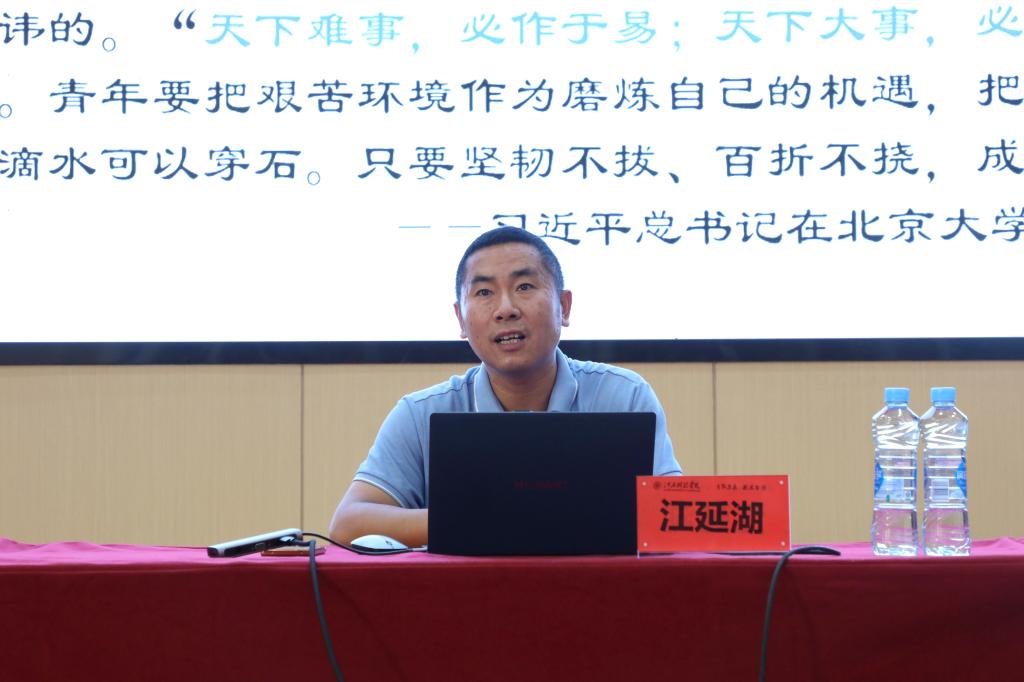 课堂上,江延湖书记从“立足新时代 学习新精神”“担当复兴大任 成就时代新人”“行而不辍 未来可期”等三个层面与同学们进行面对面谈心交流,并结合自身学习工作经历及国内外鲜活事例,就大学学习规划和青年成长成才进行详细辅导。他从中华民族悠久历史谈起,强调认识历史,并沿着历史的脉络,认清我们所置身的时代及其特征,这是正确判断发展方位、前进方向的科学方法。他阐释了党的历史上具有标志性意义的十一届三中全会、十八届三中全会对中国改革发展的深刻影响,深入阐述了党的二十届三中全会关于进一步全面深化改革的战略部署。他表示,青年是推进中国式现代化的生力军,广大江科青年生逢其时、重任在肩、大有可为。希望2024级新同学牢记习近平总书记的殷切嘱托,立大志、明大德、成大才、担大任,努力成为堪当民族复兴重任的时代新人。
