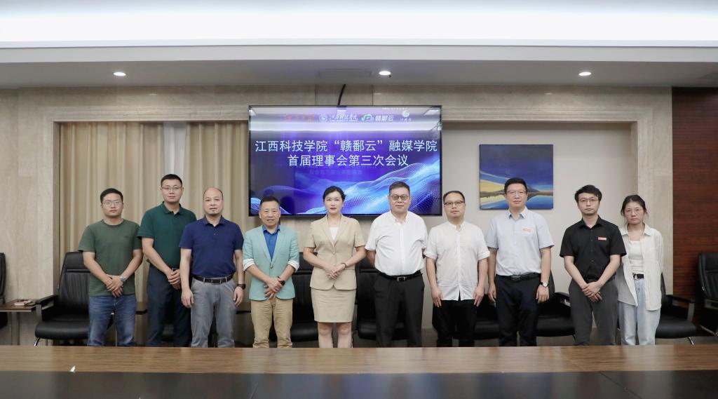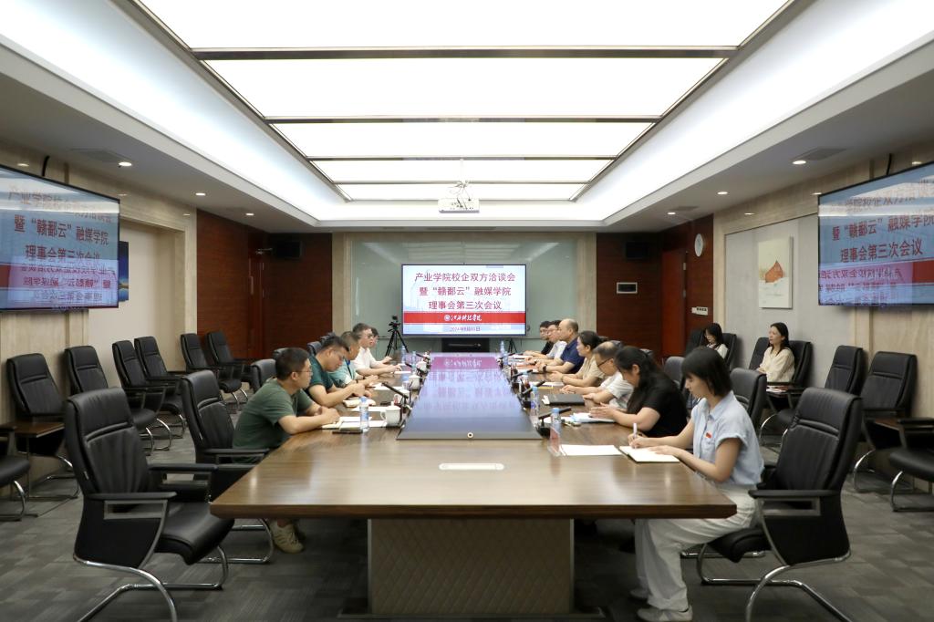 会议总结了“赣鄱云”融媒学院2024年的教学成果、实践基地建设等工作开展情况作出总结、汇报了产业学院的最新建设情况及校企合作项目的落地成果。校企双方与会人员对产业学院理事会成员调整情况进行讨论并交流意见。