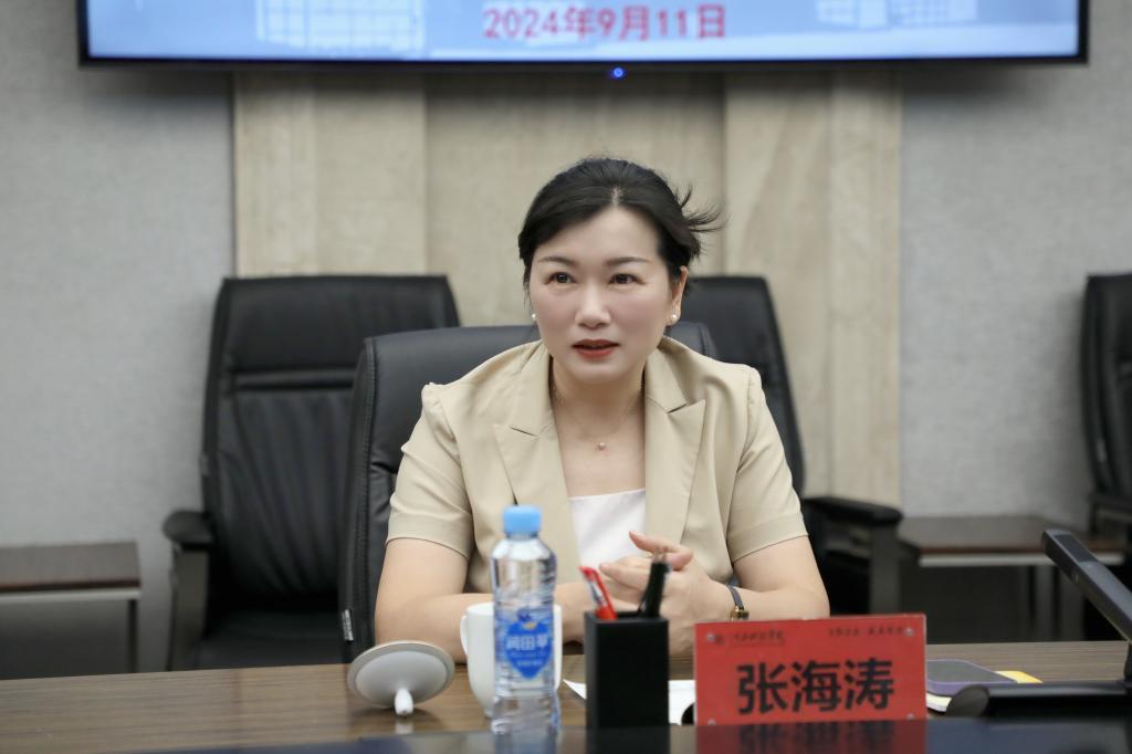 张海涛校长在讲话中,对融媒产业学院共建合作单位江西日报社一直以来的帮助和支持表示感谢。她表示,自合作以来,双方携手并进,共同探索产教融合的新路径。面对快速变化的市场需求,我校产业学院保持高度的敏锐性和前瞻性,积极与江西日报社一同开拓新的合作领域与合作模式。产业学院应打破传统界限,促进教育链、人才链与产业链、创新链的深度融合与无缝对接。