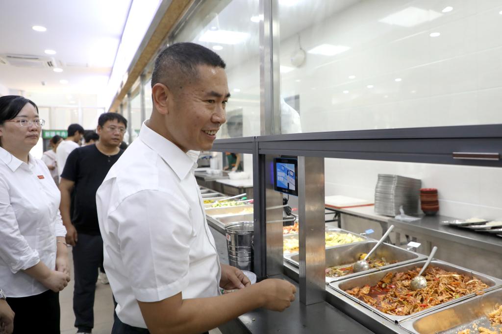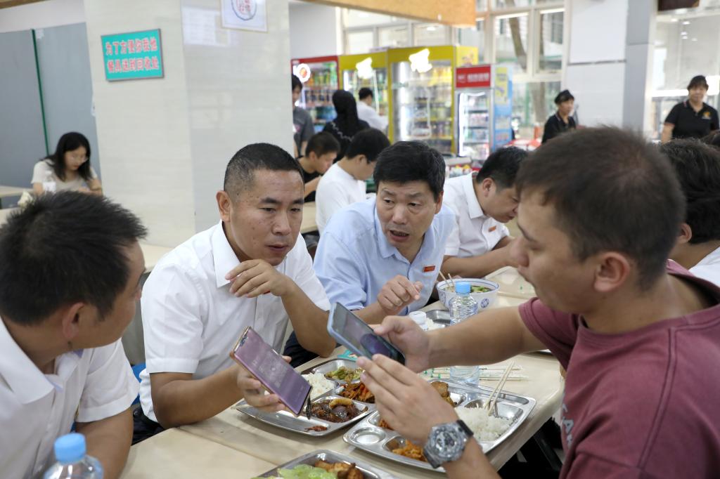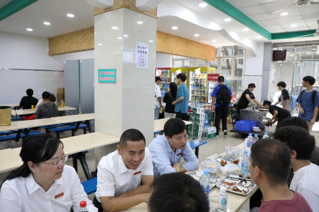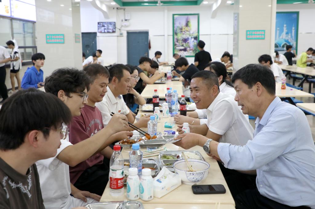 “饭菜价格贵不贵?”“饭菜质量怎么样?”“合不合口味?”……江延湖书记不时亲切地询问学生,并倾听学生的意见和建议。他还详细了解同学们在校期间学习、生活和思想状况,寄语大家要刻苦学习,增强本领,忠于祖国,不负时代,努力使自己成为祖国建设的有用之才、栋梁之材。
