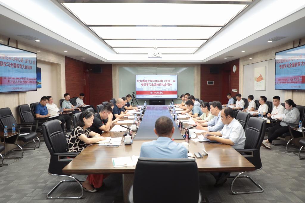 校党委书记江延湖作重点发言。他指出,全国教育大会是对新时代新征程加快建设教育强国作出动员部署的一次重要会议,为加快建设教育强国指明了方向、描绘了蓝图、部署了任务,在我国教育发展史上具有十分重要的里程碑意义。习近平总书记的重要讲话高屋建瓴、思想深邃、内涵丰富、意义重大,深刻回答了新时代新征程为什么要建设教育强国、建设什么样的教育强国、怎样建设教育强国等一系列重大问题,具有很强的政治性、思想性、指导性,是习近平新时代中国特色社会主义思想教育篇的丰富发展。