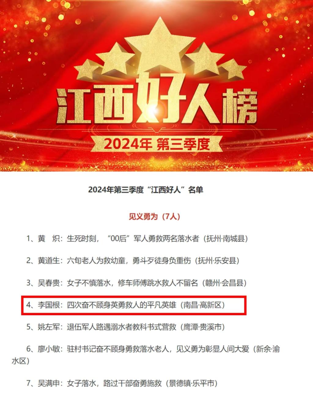 说起最近一次跳水救人的经历,李国根摆摆手说,也不是什么大事,不值得“老提”,“我觉得没有什么,不论谁遇到那种情况,都会出于本能第一时间伸手施救的。”
