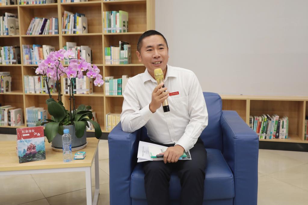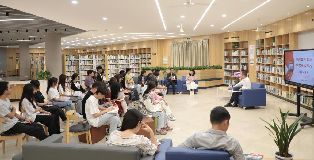 江科网讯(记者 杨泳慧)为持续深化红色文化铸魂育人,营造浓厚校园文化氛围,建设书香校园,10月14日下午,我校于图书馆二楼醉翁阁举办“赓续红色血脉,争做薪火传人”读书分享会。校党委书记江延湖与师生代表齐聚一堂,围绕《红旗漫卷江西》分享阅读感悟、共话红色力量。