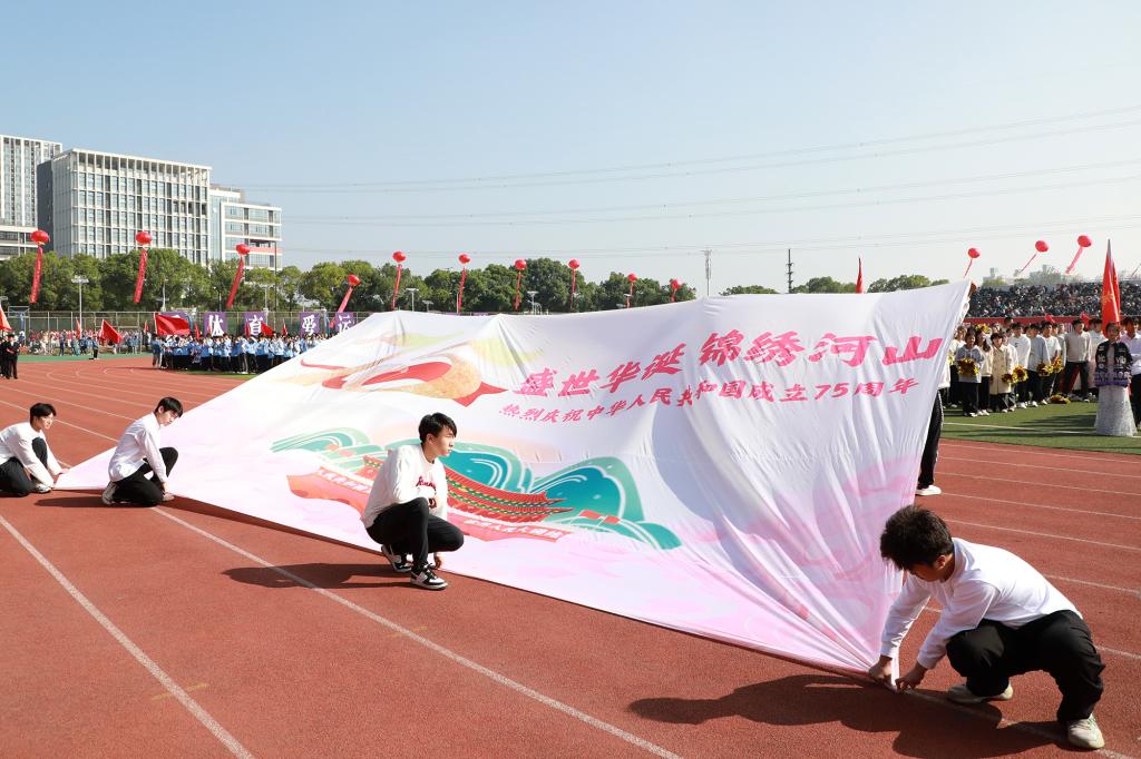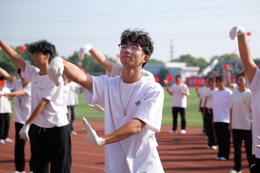 “第九套广播体操现在开始!原地踏步走……”开幕式上,各学院学生代表进行第九套广播体操展示。大家精神抖擞、身姿舒展,动作标准规范,散发着健康向上、蓬勃昂扬的气息。伴随着激昂的《运动员进行曲》,五环旗、校旗、会徽方阵、彩旗队入场,裁判员代表队、教职工运动员代表队、各学院代表队的师生精神抖擞、气势昂扬地走过主席台。响亮的口号、矫健的英姿、精彩的展示……无不彰显江科人饱满的精神面貌。