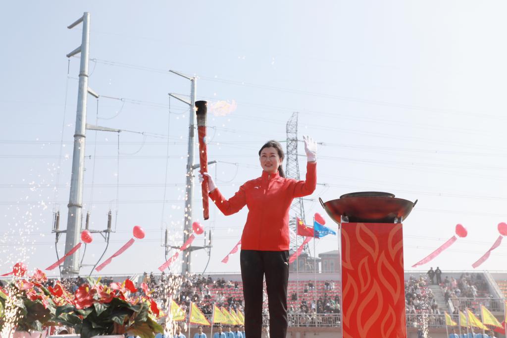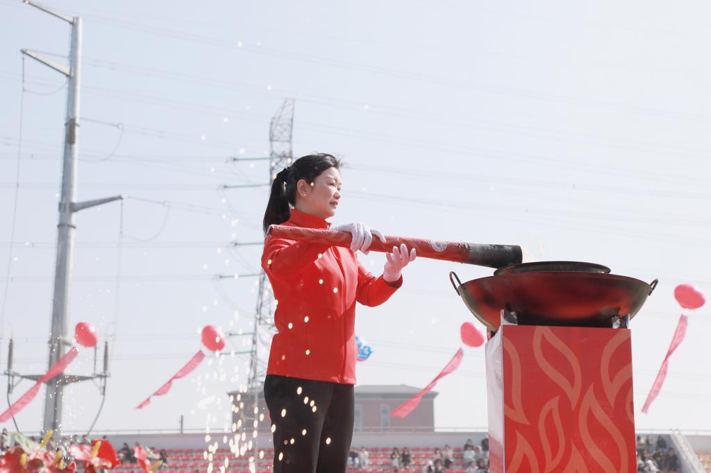 校长张海涛点燃本届运动会主火炬台