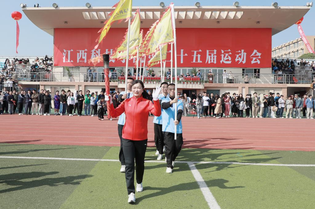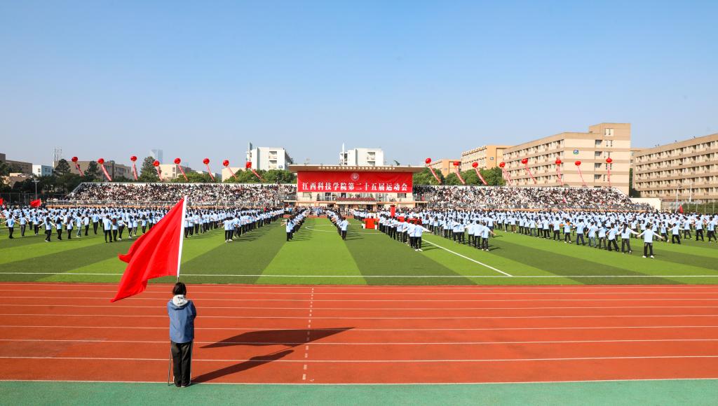 江科网讯(记者 何强江)丹桂飘香好时节,活力竞技正青春。10月23日上午,江西科技学院第二十五届运动会在奥林匹克中心开幕。学校创办人于果出席,校党委书记江延湖致开幕词并宣布运动会正式开幕,校长张海涛传递火炬并点燃主火炬台,澳大利亚国王学院语言教学中心主任萨瓦斯·帕潘多尼应邀出席。全体在家校领导,以及相关职能部门负责人、各学院师生代表、各分工会代表、全体参赛运动员参加开幕式。开幕式由副校长周冰冰主持。