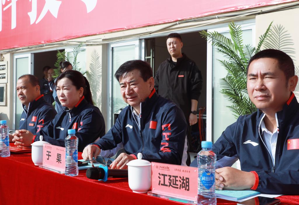 江延湖书记致开幕词,代表学校向积极筹备运动会的师生员工表示衷心感谢,向参与本届运动会的全体运动员、裁判员表示诚挚问候,并预祝师生们在这场运动盛会中强身健体、磨练意志、收获成长。他指出,我校高度重视体育工作,正着力开展“活力江科”建设。为弘扬体育精神,让全校师生在同一片蓝天下快乐生活、健康成长,学校大力推行课间广播体操、开展校园乐跑活动、升级社区健身设施、成立活力江科健身协会,体育教育教学呈现出勃勃生机。他希望师生以运动健身为常态,在酣畅淋漓的运动中,享受超越自我的乐趣;在你追我赶的竞争中,锤炼力争上游的精神;在齐心协力的合作中,诠释互助共赢的意义;在力与美的展示中,领悟运动健康的真谛。