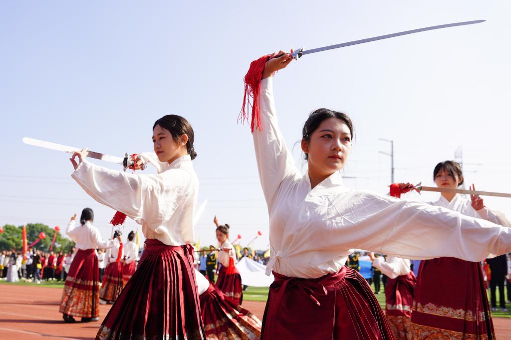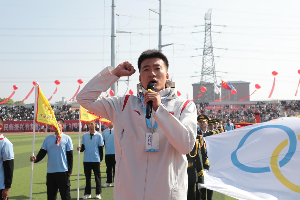 裁判员代表王金坤与运动员代表吴羽萱分别宣誓后,裁判长、体育学院院长严财庆宣布第一项竞赛开始,各项比赛随之展开。