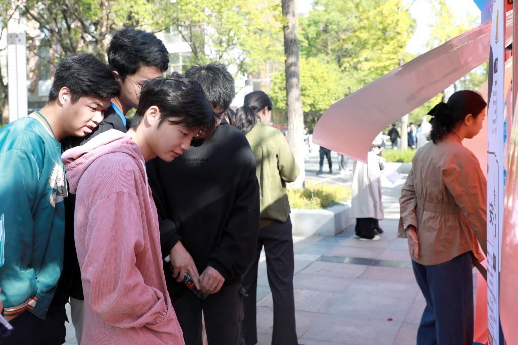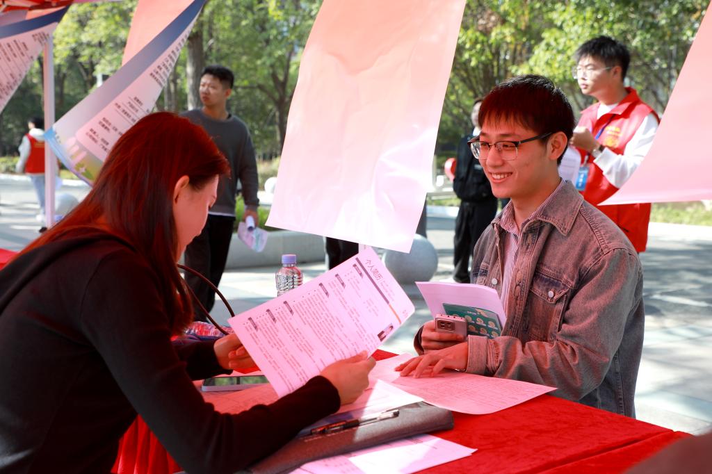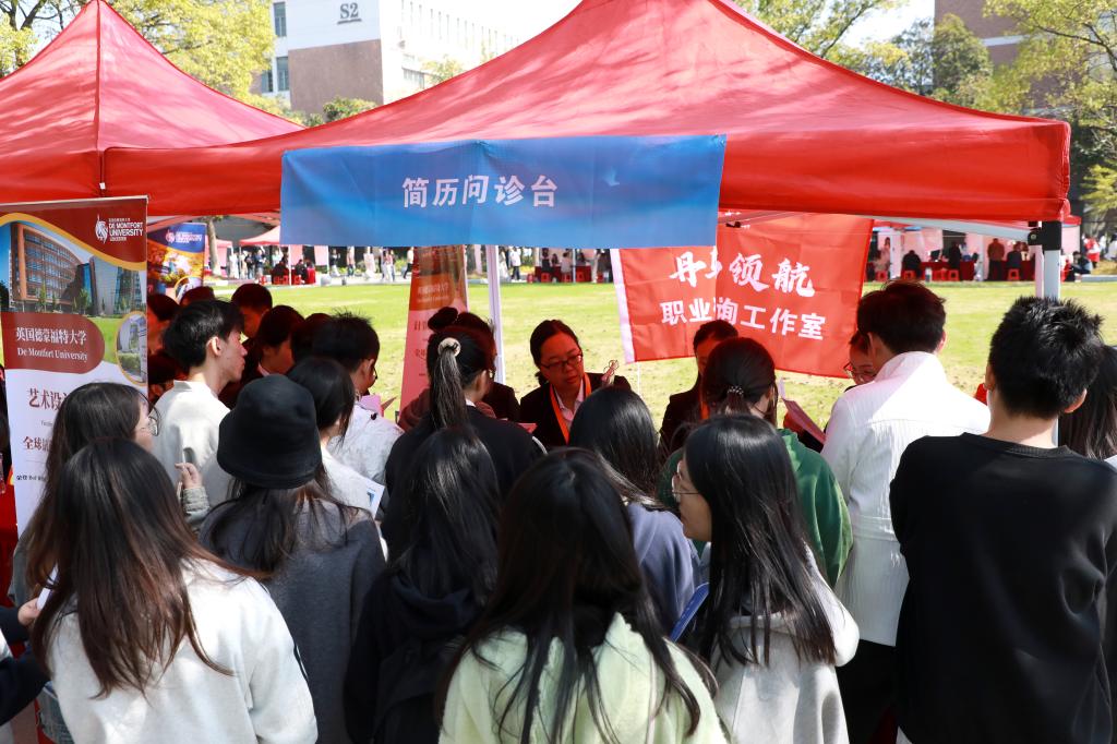 此次双选会投放招聘岗位8500余个,包括信息技术、机械制造、医疗药业、金融管理、艺术设计、电子商务、文化传媒等多个行业、领域,为毕业生提供多元化的职业选择和发展空间。当天现场气氛热烈,同学们积极与用人单位交流,寻求合适的就业机会。为助力毕业生的求职之路更加顺利,双选会现场还设立“直播带岗”“总服务台”“简历问诊台”“征兵政策宣讲”“国际教育咨询台”等功能专区,将招聘活动与就业宣传教育、就业指导服务相结合,为大家提供就业创业政策咨询、简历诊断、现场求职答疑等一站式的政策宣讲与指导。
