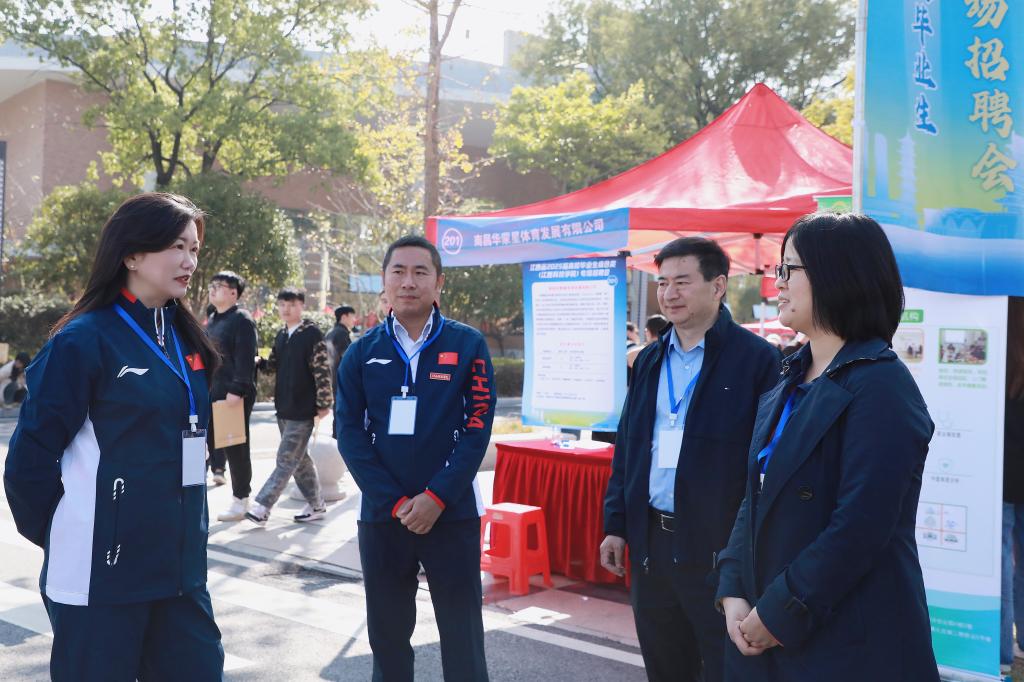 江科网讯(记者 何强江 通讯员 魏鸣羲)10月24日,秋光明媚,由江西省人力资源和社会保障厅、江西省教育厅主办,江西省就业创业服务中心、江西科技学院承办的江西省2025届高校毕业生综合类(江西科技学院)专场招聘会在景观大道举行,200余用人单位应邀来校选才。江西省就业创业服务中心纪委书记饶军霞、公共服务处副处长安光,我校创办人于果、党委书记江延湖、校长张海涛等全体在家校领导到招聘会现场指导,详细了解活动组织情况和企业用人需求等信息。