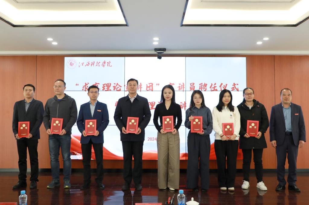江科网讯(记者 何强江)10月24日下午,首批“求真理论宣讲团”宣讲员聘任仪式暨首场理论宣讲会在行政南楼第七会议室举行。校党委副书记、副校长、“求真理论宣讲团”团长闵桂林出席仪式为首批宣讲员颁发聘书并作党的二十届三中全会精神宣讲。