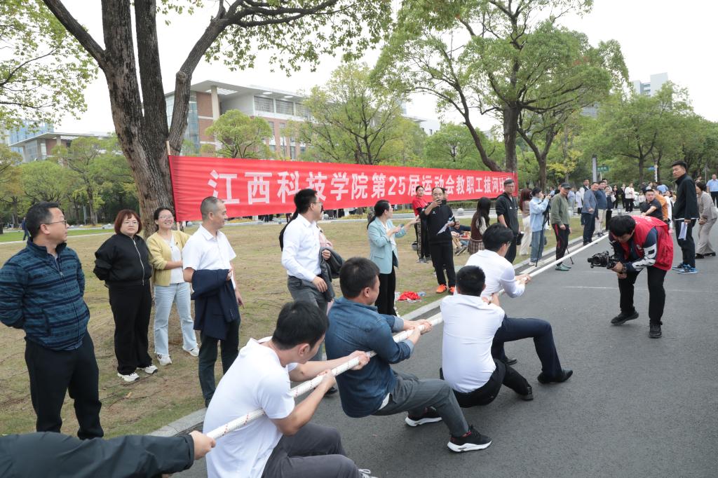 江科网讯(记者 杨泳慧)为进一步丰富教职工的精神文化生活,增强教职工的凝聚力和团队精神,持续推进“活力江科”建设,学校组织开展第二十五届教职工拔河比赛。校党委书记江延湖、校长张海涛等校领导到现场为比赛鸣哨,并为队员加油助威。