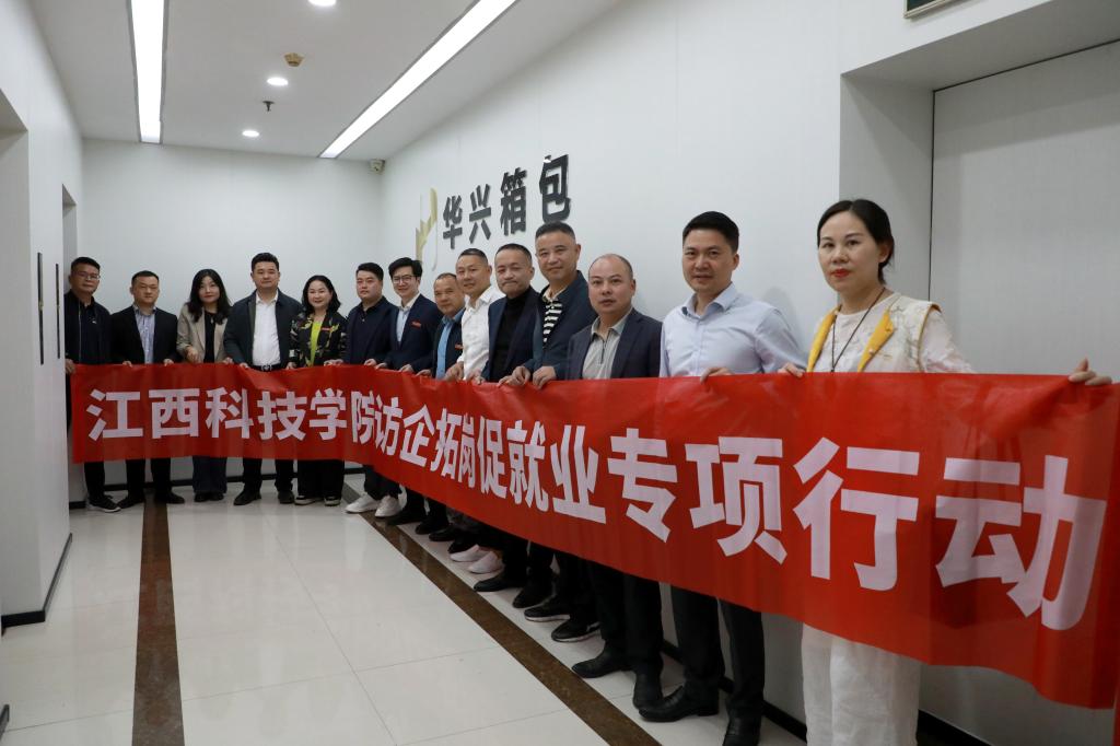 江科网讯(记者 何强江)为进一步凝聚校友力量、深化校企合作交流,更好地服务广大校友,实现校友和学校事业共赢发展,10月30日,理事长喻恺带队先后走访江西校友企业江西省新干县华兴箱包有限公司(以下简称“华兴箱包”)和南昌力通岩土工程设备有限公司(以下简称“立通岩土”),开展访企拓岗专项行动。校党委副书记、副校长闵桂林,招就处处长吴丽娟,江西校友会会长江期胜陪同参加活动。