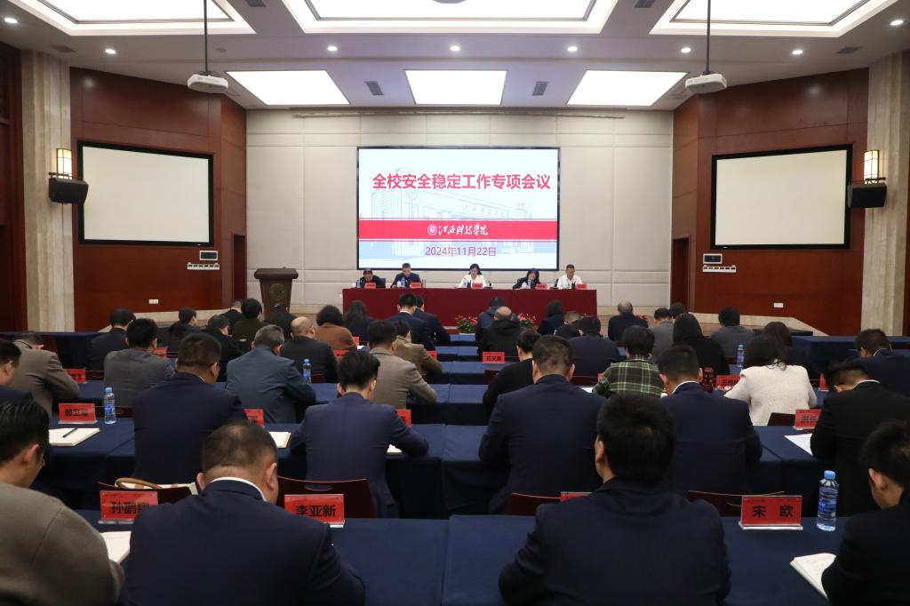 江科网讯(记者 杨泳慧)11月22日上午,全校安全稳定工作专项会议在行政南楼第一会议室召开。校长张海涛,副校长林素君、周冰冰、吕文威、宋军伟出席会议。各职能部门负责人,各学院院长、学工副院长参会。会议由周冰冰副校长主持。