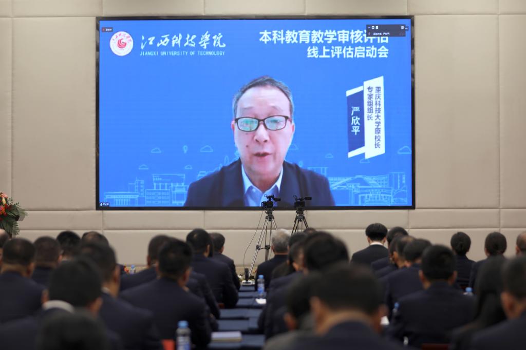 江科网讯(记者 何强江)11月25日上午,我校在行政南楼第一会议室召开教育部本科教育教学审核评估线上评估启动会,会议以线上线下相结合的形式进行。专家组组长、重庆科技大学原校长严欣平,副组长、南昌工程学院副校长陆伟锋等专家组成员在线出席会议。省委教育工委委员、省教育厅副厅长汪立夏出席会议并讲话,学校创办人于果出席会议、理事长喻恺致辞、党委书记江延湖主持会议、校长张海涛作自评补充汇报。教育督导处二级调研员王景定,教育评估监测研究院副院长唐旭,教育评估监测研究院高教所所长罗运锋,学校全体校领导、全校副处级及以上干部、专业负责人、教研室主任和师生代表等线下参会。