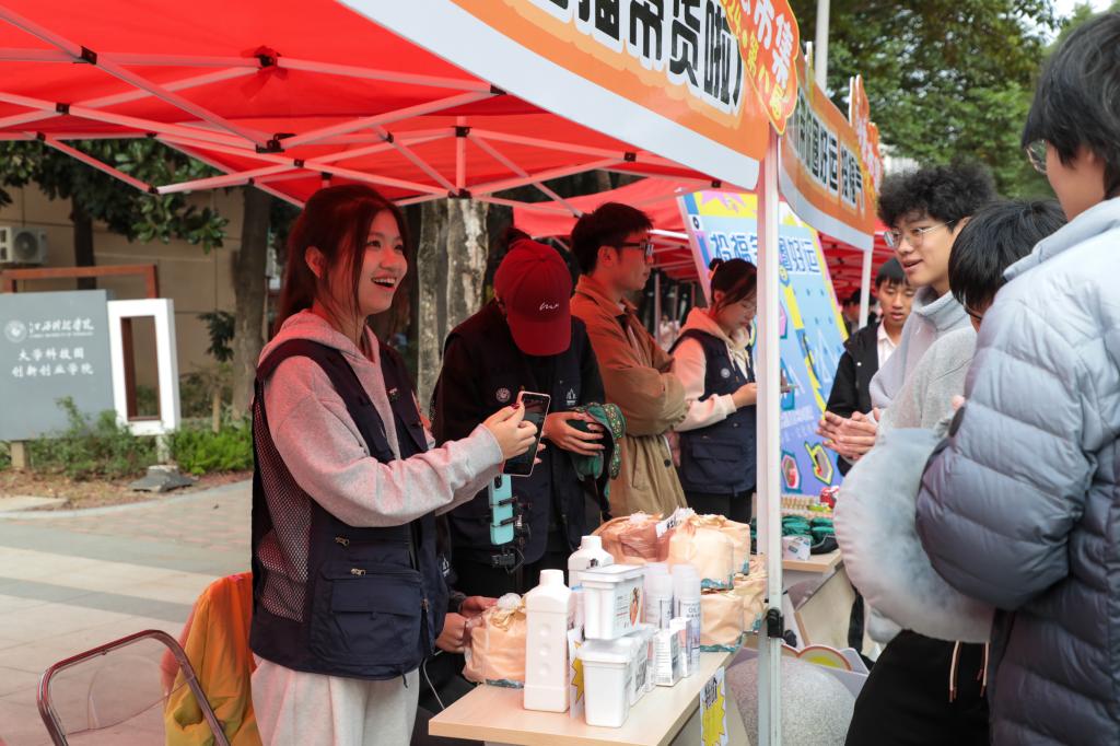 江科网讯(记者 何强江)为激发同学们的创新创业意识,营造浓厚的创新创业氛围,提高同学们的劳动实践能力,11月22日至24日,我校在紫薇路举办第八届创意市集活动。校党委书记江延湖出席活动开幕式并击鼓“开市”。校党委副书记夏拥华,南昌高新区就业创业服务中心副主任魏小英、民生服务组组长罗璇,组织部、宣传部、统战部、校团委、招就处等部门负责人参加活动。