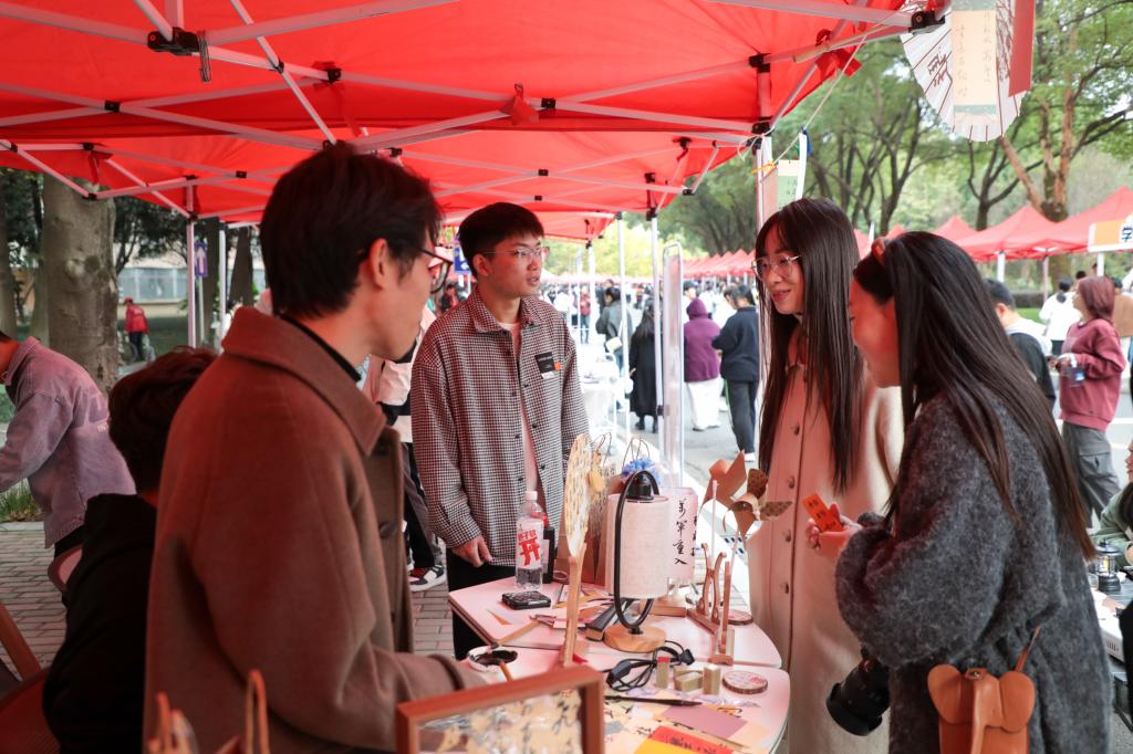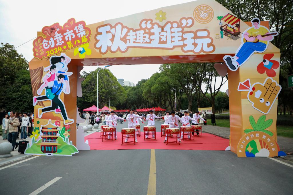 《中国龙》《等你回答》《Dare To Live》《灼灼风华 向阳而行》《Ditto》等一个个开场表演引得师生驻足观赏,现场叫好声、鼓掌声不断,气氛十分热烈。此次创意市集分为政策宣传区、学院展区、社团互动区、创意展区、公益区、校友成果区六个区域。走进市集,摊位之间,人流如织;各色商品,琳琅满目。机械模型、书法文创、自制香水、DIY漆艺、手工挂件、才艺表演、童趣零食……创意与梦想碰撞交流,创业和成长悄然发芽。活动现场还为同学们准备了集章抽奖环节,吸引大家深入探索市集。收集全部印章的同学可以参加抽奖活动,主办方也为这些“幸运儿们”送出惊喜的小礼物。