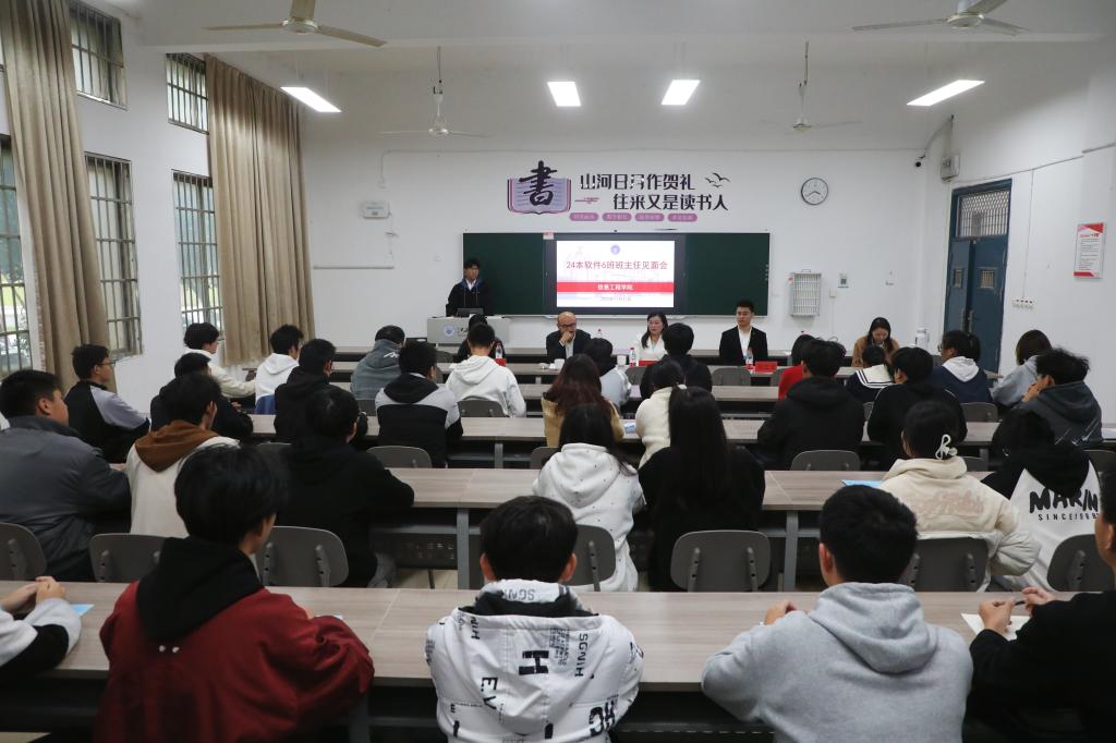 江科网讯(记者 杨泳慧)“您好,校长。在平衡好兴趣爱好和专业学习的关系上,我想听听您的建议。”“在新生课程较少的情况下,应该怎样提升自己?现在有必要去参加科研竞赛嘛?”“学校会为学生提供更多与企业合作的实习机会吗?”近日,校长张海涛以班主任身份走进信息工程学院J10–109教室,与24本软件6班的同学们面对面展开交流,一起聊专业、谈未来。见面会由信息工程学院院长王涛涛主持。