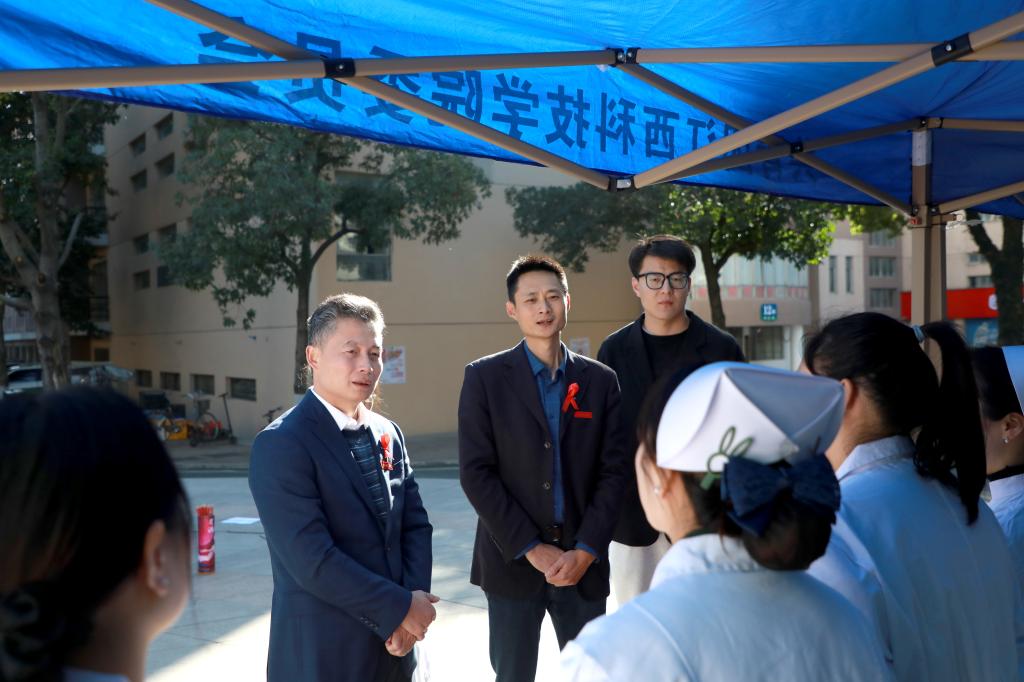 当天,周冰冰副校长也走进活动现场,与咨询点的专业医师和参与活动的师生进行交流。他现场发出倡议——艾滋病防治工作事关广大师生健康安全,事关民族振兴和国家发展,是一项长期而艰巨的任务,需要全校师生乃至社会的共同参与与努力,让我们携起手来,共同为人类艾滋病防治事业贡献自己的力量。同时呼吁师生树立正确健康观念,践行健康生活方式,从源头上阻断艾滋病的传播路径,共同筑起预防艾滋病的防线。