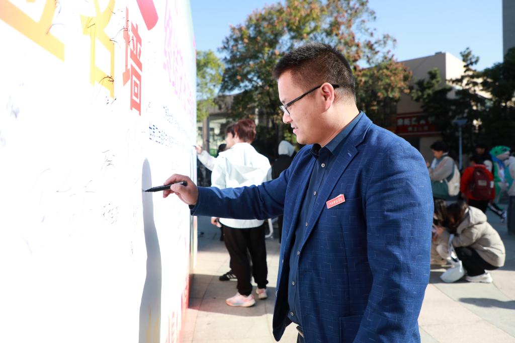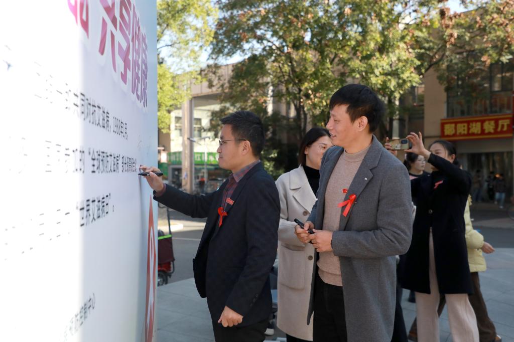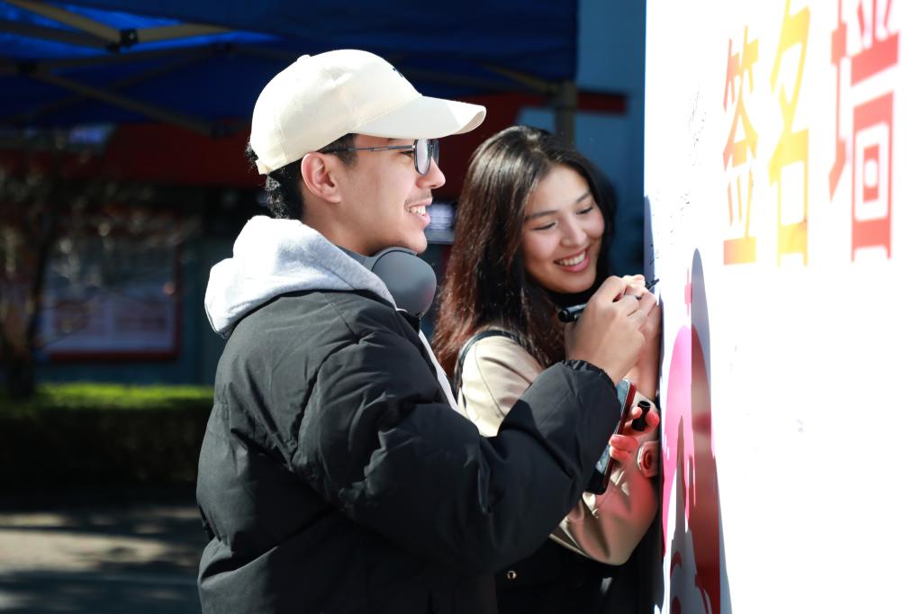 活动现场,师生在签名墙上留下自己的名字,以签名为约定,参与防疫抗艾,共担健康责任。除了展板展示,还设置了红丝带佩戴、掷骰子和投壶游戏、小礼品领取、爱心抱抱、宣传资料发放等环节,吸引了师生踊跃参与。通过现场宣传增加了师生对艾滋病的认识和关注,让他们懂得如何远离艾滋病毒和珍爱生命,知道怎样去对待艾滋病患者,消除对艾滋病病人和感染者的歧视,积极动员身边的人参与到艾滋病预防、控制和关爱艾滋病人的活动中去。
