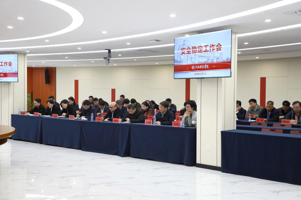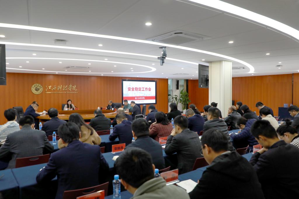 江科网讯(记者 何强江)12月5日下午,张海涛校长在行政南楼第六会议室主持召开安全稳定工作会议,传达学习省委教育工作领导小组会议精神,分析当前我校安全稳定形势,安排部署我校安全稳定各项工作。校党委副书记、副校长闵桂林,副校长陈辉、周冰冰、吕文威、宋军伟出席会议。