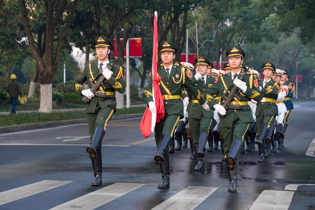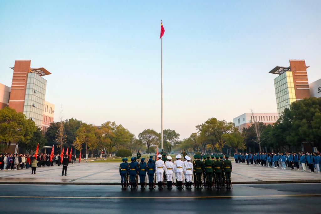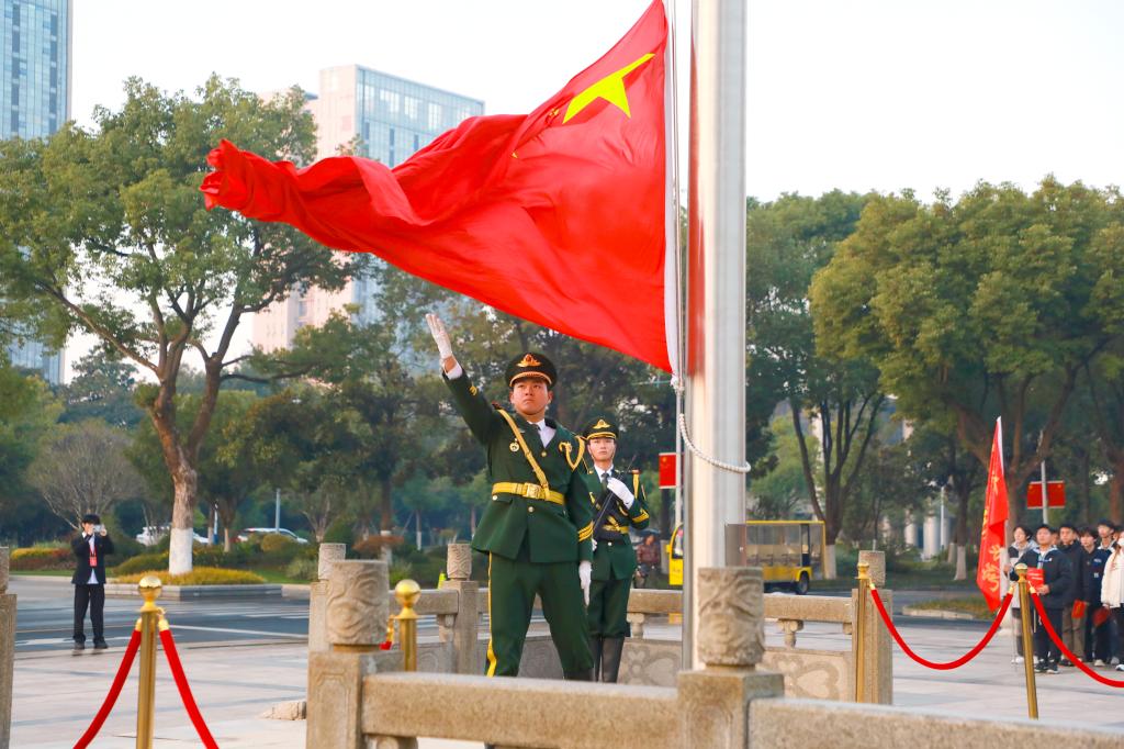 迎着初升的太阳,同学们齐聚国旗台下,共同见证这一庄严的时刻。随着雄壮的国歌声响起,五星红旗缓缓升起,迎风飘扬。在场的每一位同学都肃立致敬,目光中流露出对祖国的无限热爱和对宪法的崇高敬意。“本宪法以法律的形式确认了中国各族人民奋斗的成果,规定了国家的根本制度和根本任务,是国家的根本法,具有最高的法律效力……”升国旗仪式后,现场人员齐声朗读宪法序言和条文,声音铿锵有力,回荡在清晨的空气中。