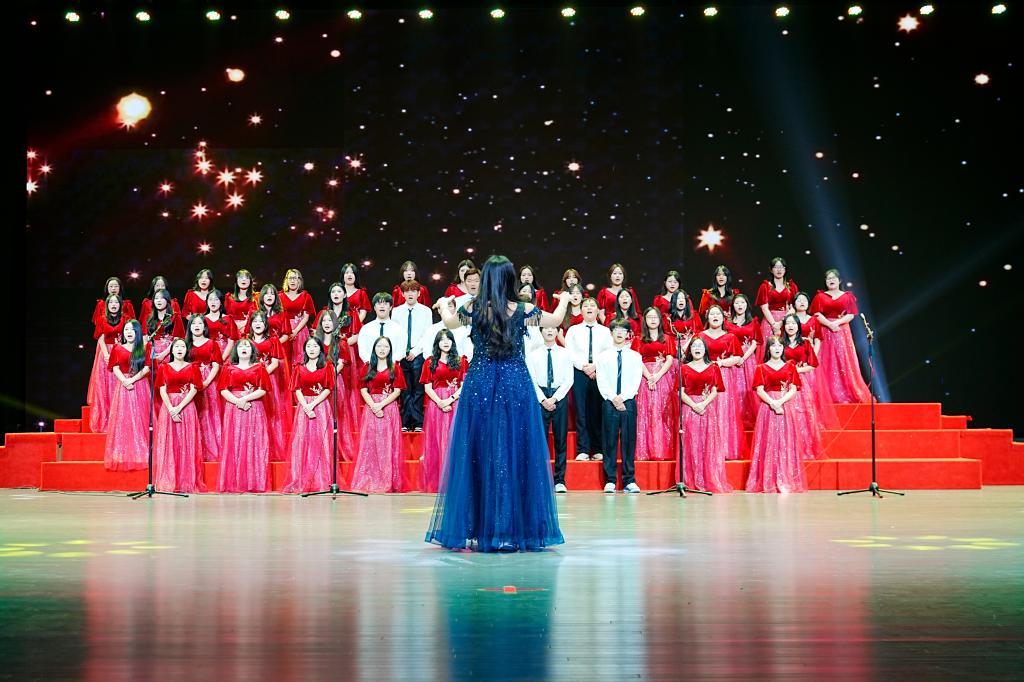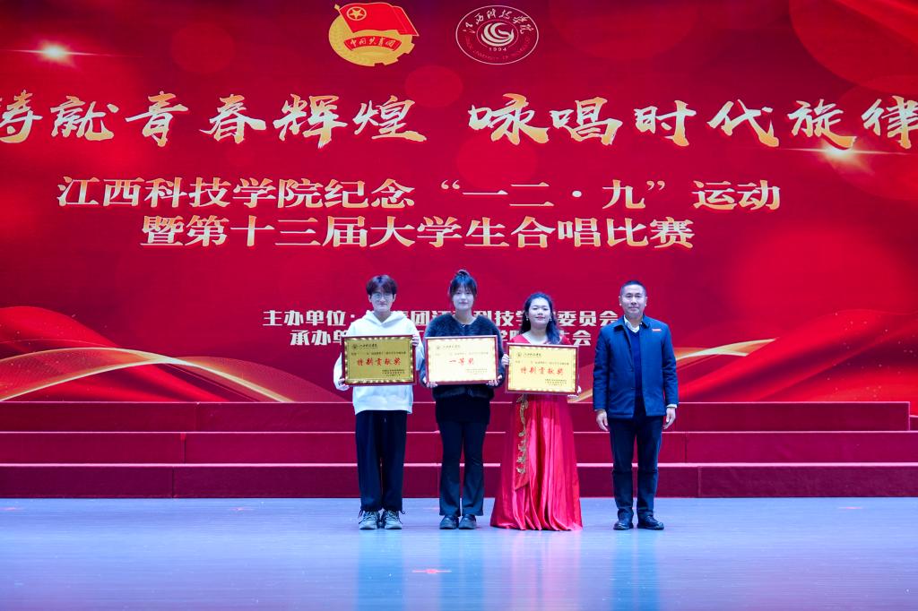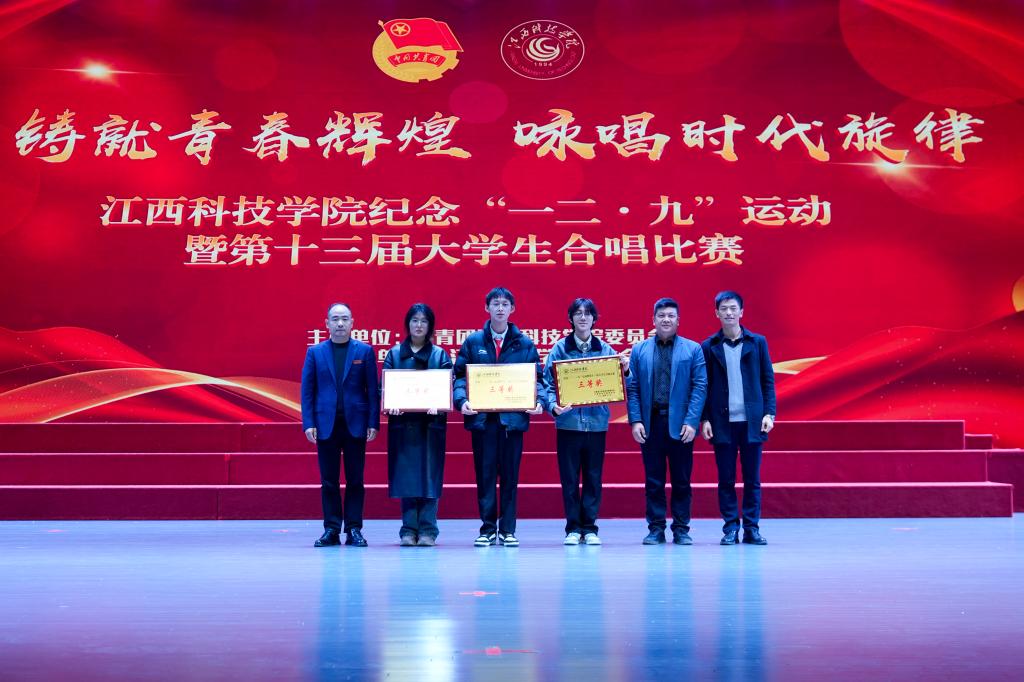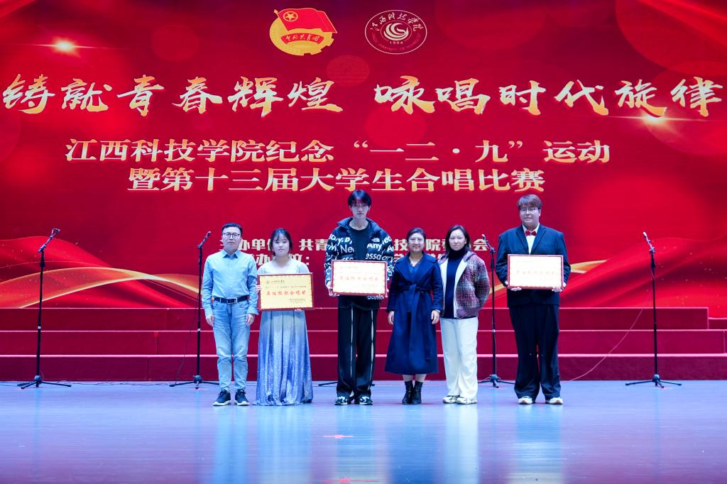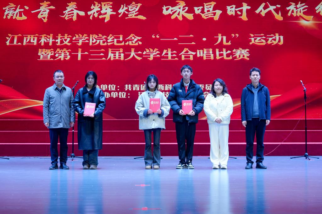 江科网讯(记者 何强江)12月9日晚,蓝海大剧场灯火通明,歌声悠扬,江西科技学院纪念“一二‧九”运动89周年暨第十三届大学生合唱比赛在这里举行。近700名青年学子汇聚一堂,以声传情、以歌咏志,激情唱响爱国主义时代强音。
