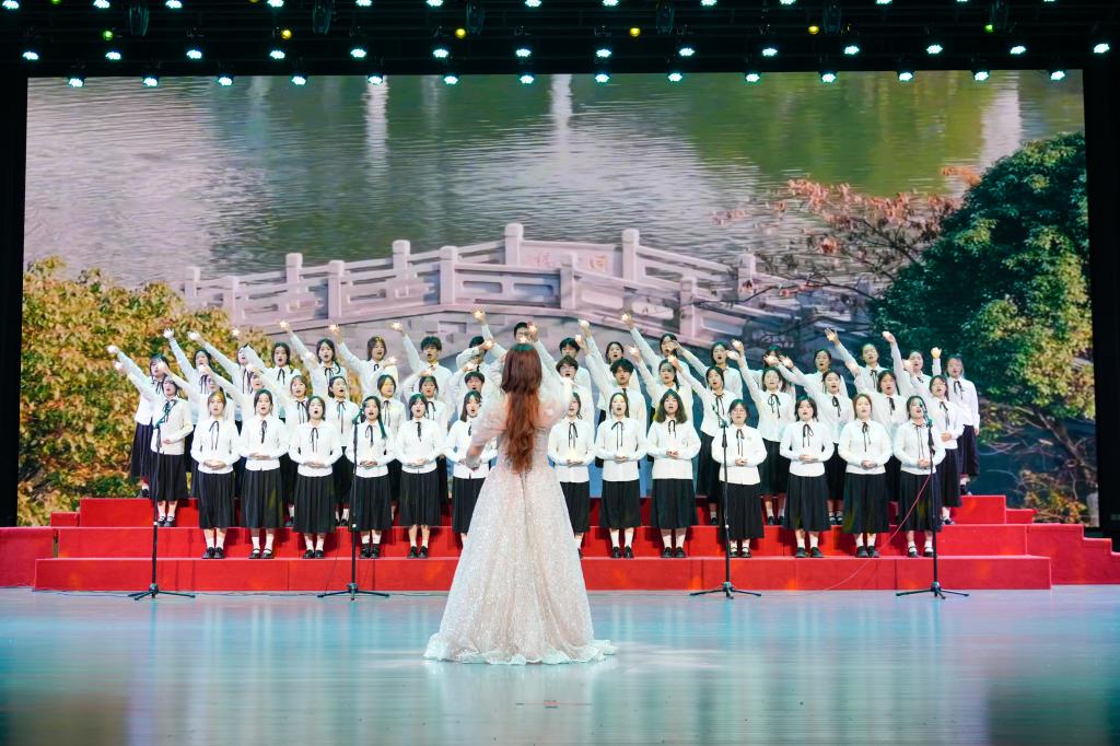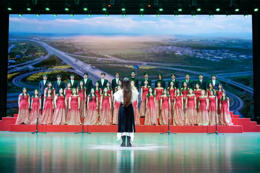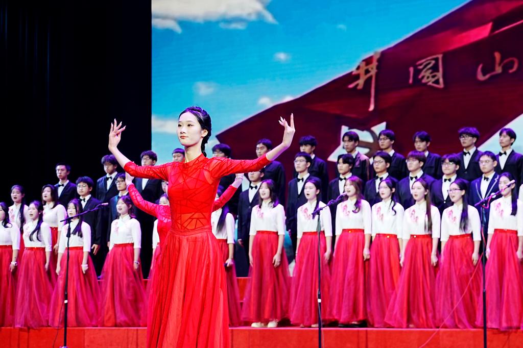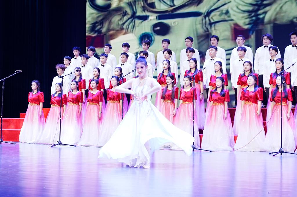 开场舞《桃花流水》后,13支合唱队伍的学子们以无限崇敬的情思和青春热烈的歌咏,向革命先辈致敬、为亲爱的党和祖国母亲点赞。《因为信仰》《祖国不会忘记》《再一次出发》《万疆》《领航》《我爱你中国》《四渡赤水出奇兵》《灯火里的中国》《大中国》《我的中国心》《我和我的祖国》《紫荆花盛开》《凤凰花开的路口》等脍炙人口的歌曲,唱出了新时代青年接续奋斗青春报国的铮铮誓言。合唱比赛在校大学生艺术团带来的《追寻》中落下帷幕。
