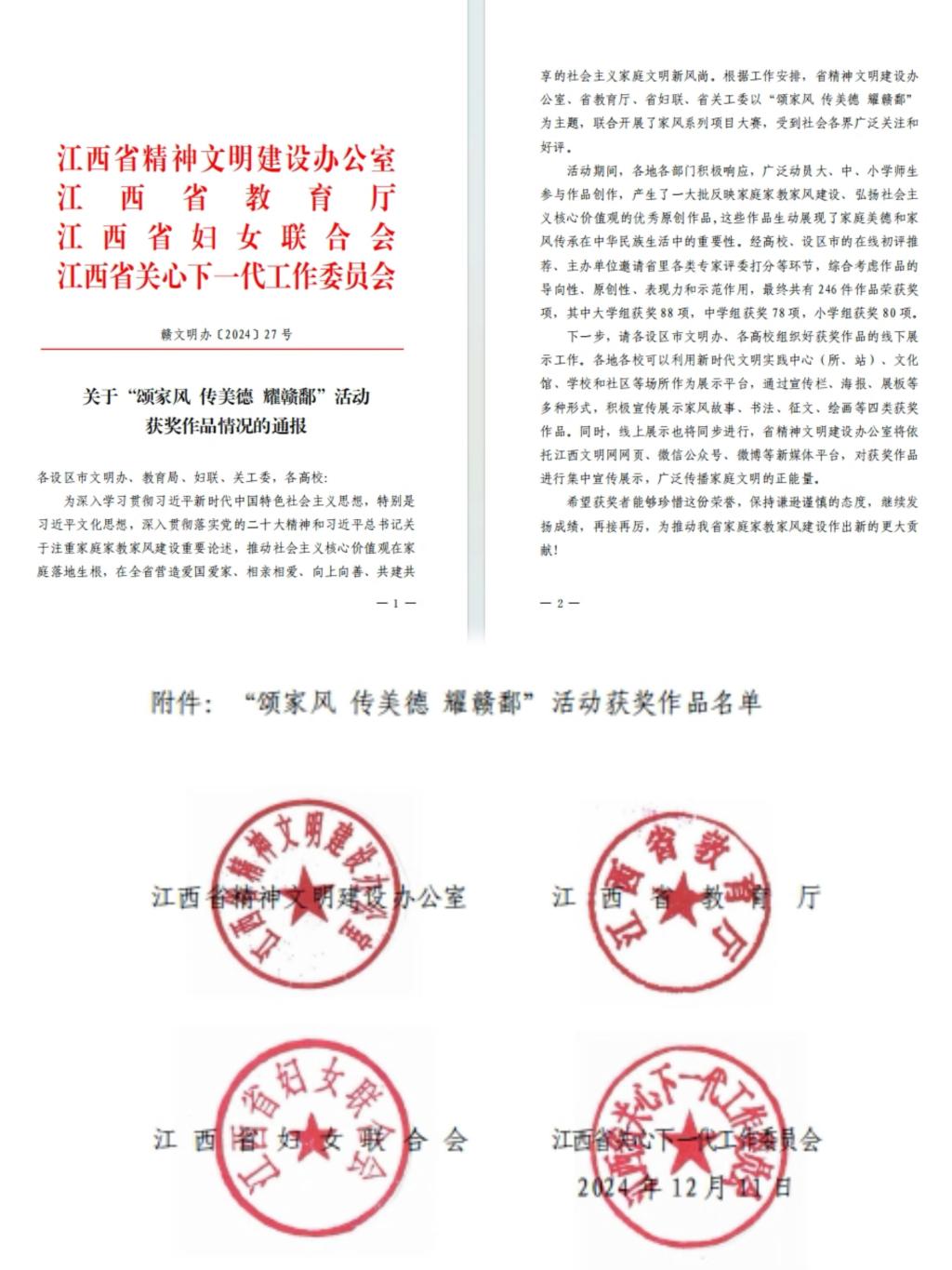 此次获奖是我校长期重视文化传承与品德教育的有力见证。之后,我校将继续积极营造浓厚的文化氛围,鼓励师生传承和弘扬中华传统美德,深入挖掘家风文化资源,让优秀家风在校园生根发芽。