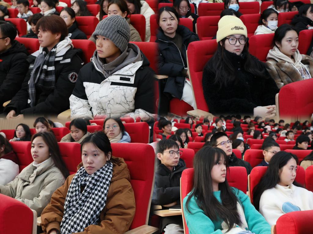 相关职能部门负责人,各学院党委书记、专职副书记,思政课教师及学生代表300余人到场聆听学习。