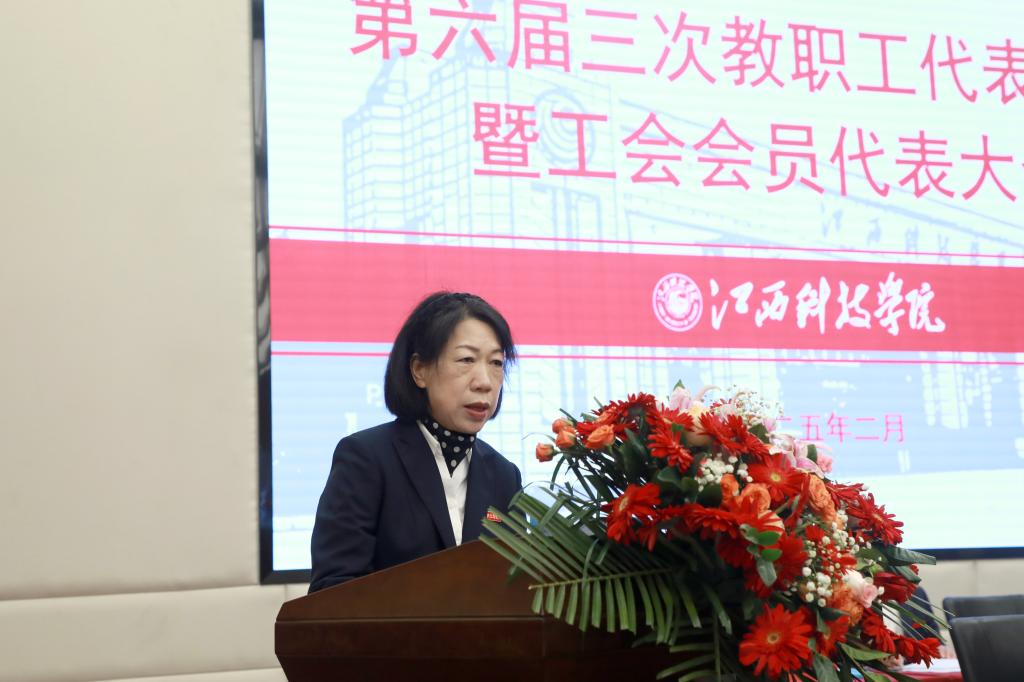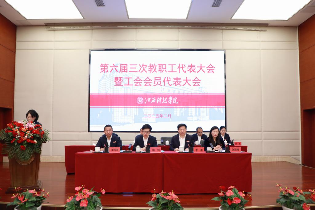 江科网讯(记者 何强江)众行致远浪潮涌,砥砺奋进谱新篇。2月14日,江西科技学院第六届三次教职工代表大会暨工会会员代表大会(以下简称“双代会”)胜利召开。学校创办人于果、理事长喻恺、校党委书记江延湖、校长张海涛等全体校领导,以及大会正式代表、列席代表近200人共襄盛会,认真履职尽责,察校情、谋良策、谈改革、促发展。会议由副校长、工会主席林素君主持。