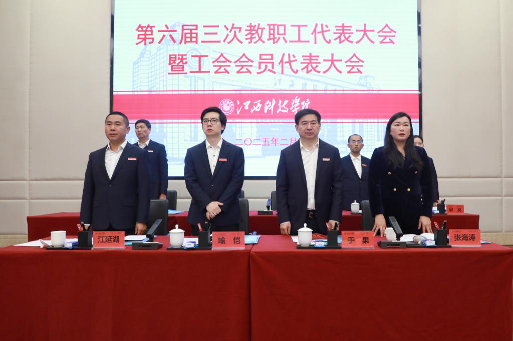 在校歌《同一片蓝天》歌声中,江西科技学院第六届三次教职工代表大会暨工会会员代表大会圆满落幕。