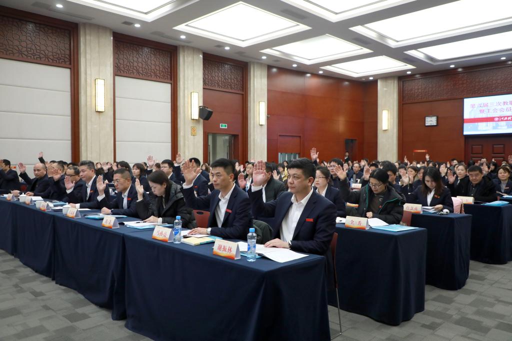 当天下午,大会举行闭幕式,通过《学校工作报告》《工会工作报告》等决议,听取提案工作报告。