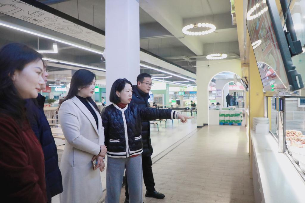 张海涛校长现场了解食堂的菜式品种、饭菜价格、服务质量、食品留样、节约粮食等方面工作落实情况,并深入后厨仔细查看食材储存、烹饪加工、环境卫生、餐具清洗消毒、虫鼠害防控、消防设施配备等关键环节,认真听取食堂工作人员的汇报。她强调,食品安全关乎师生健康,食堂必须把食品安全工作摆在首位,增强食品安全意识,明确岗位职责、规范操作流程、落实工作机制、优化管理模式,守护好全校师生“舌尖上的安全”,在保证师生饮食安全的基础上,满足师生多样化饮食需求,让师生吃上“放心餐”“营养餐”。
