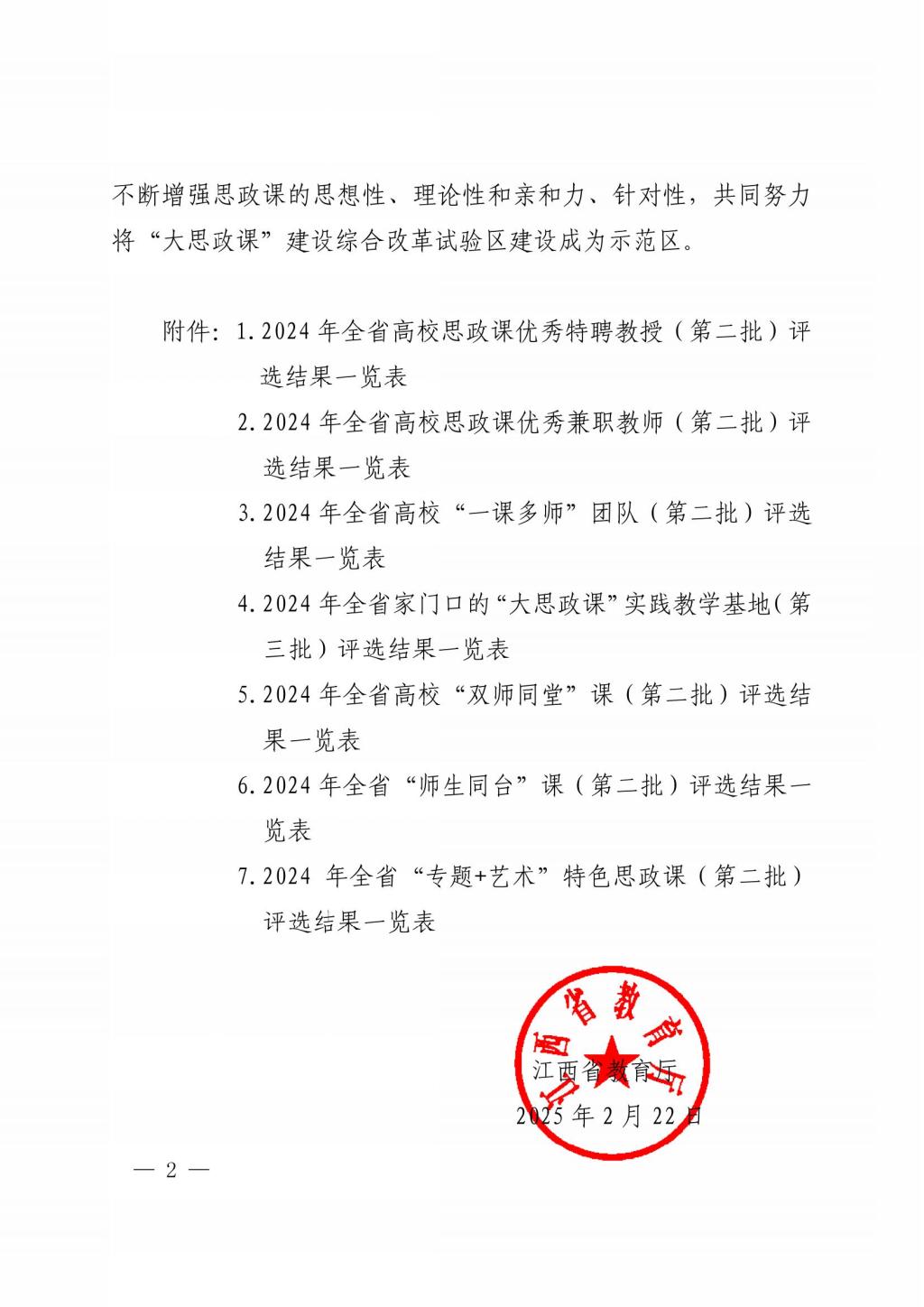 江科网讯(记者 刘莹)近日,江西省教育厅公布全省“大思政课”建设综合改革试验区改革项目评选结果。我校2名教师、1个团队、3个项目在本次评选中喜获佳绩,成果丰硕。