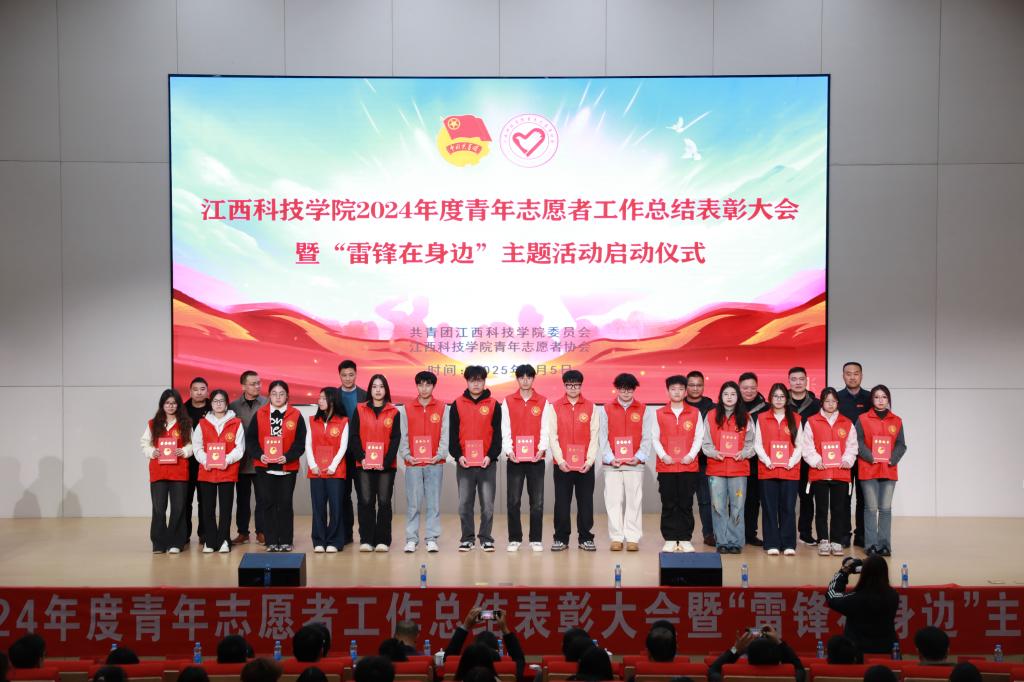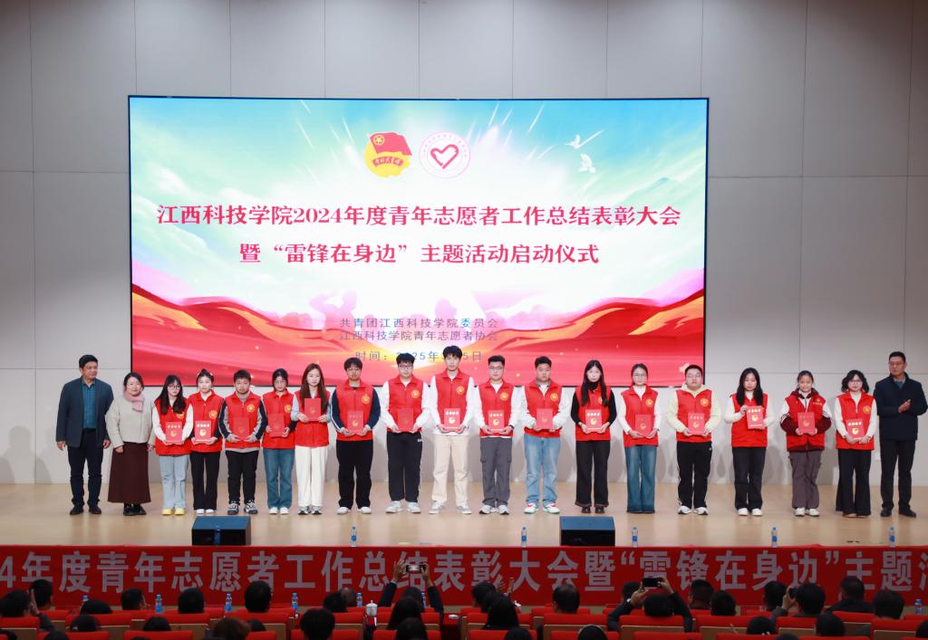 会上,闵桂林副校长宣读《关于江西科技学院2024年度志愿服务工作先进典型评选表彰的决定》,与会领导为获奖集体和个人颁奖。